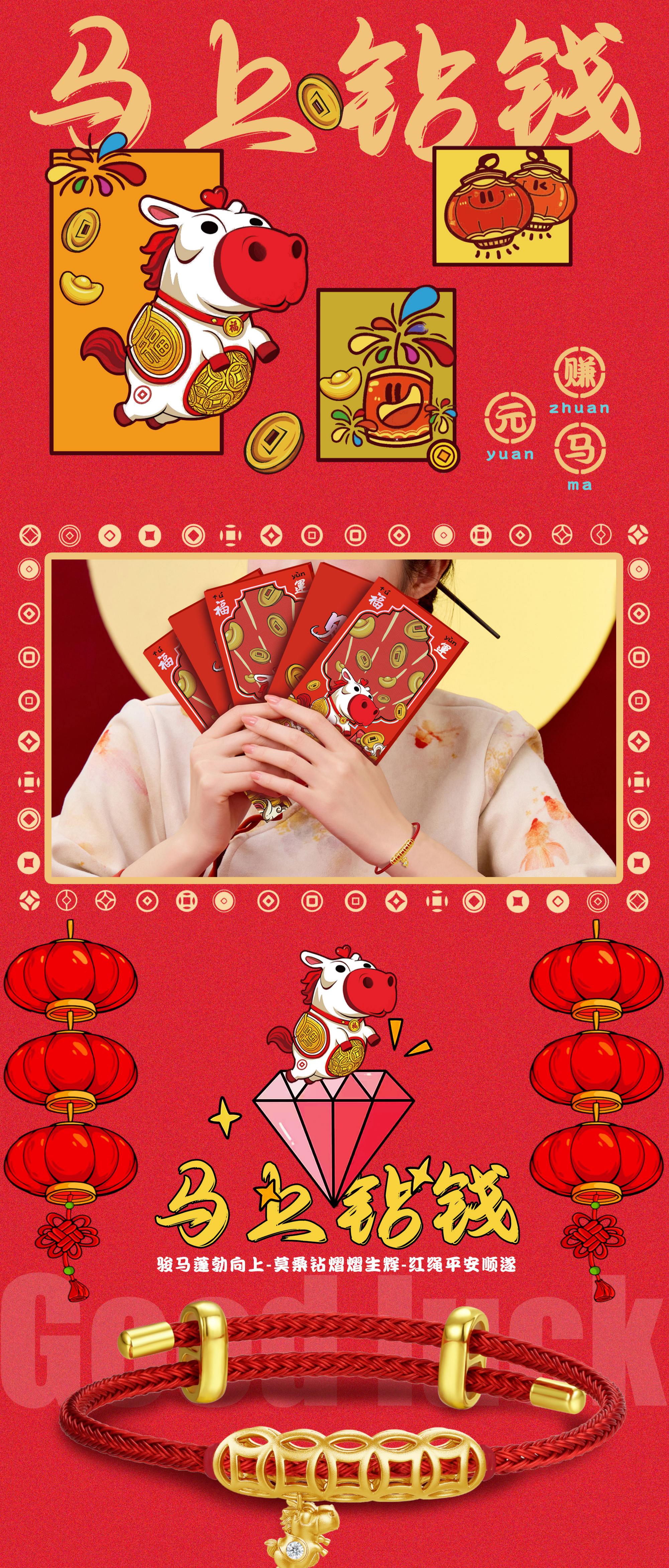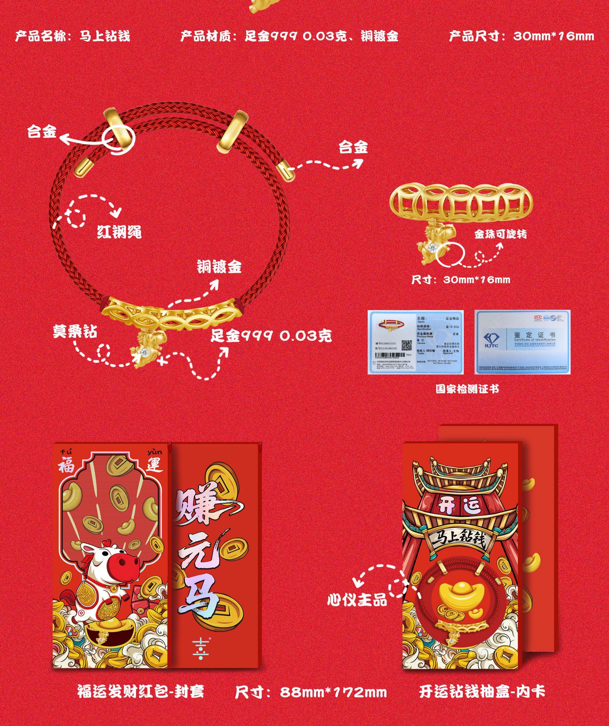 严选 | 26年新品马上钻钱莫桑钻足金999/0.03g红手绳 新春喜庆福气幸运红手链