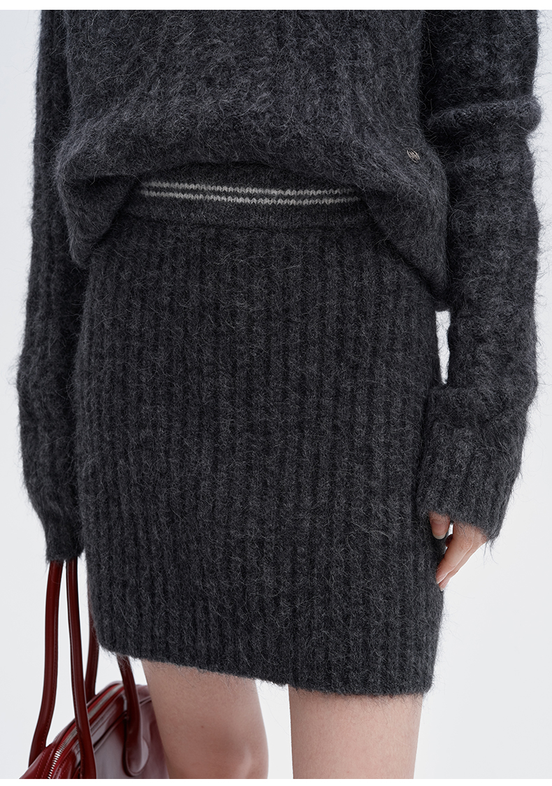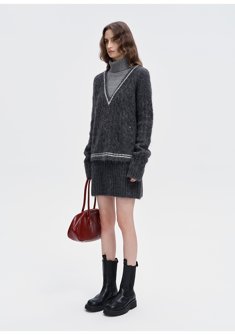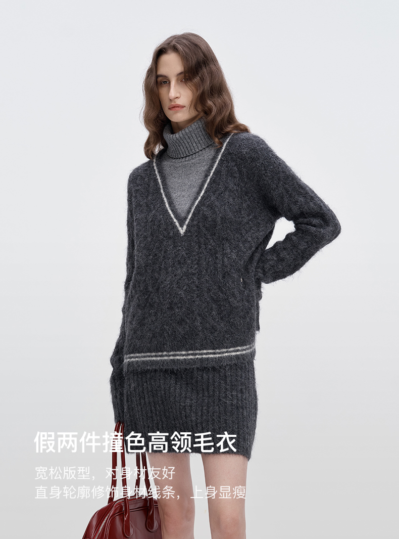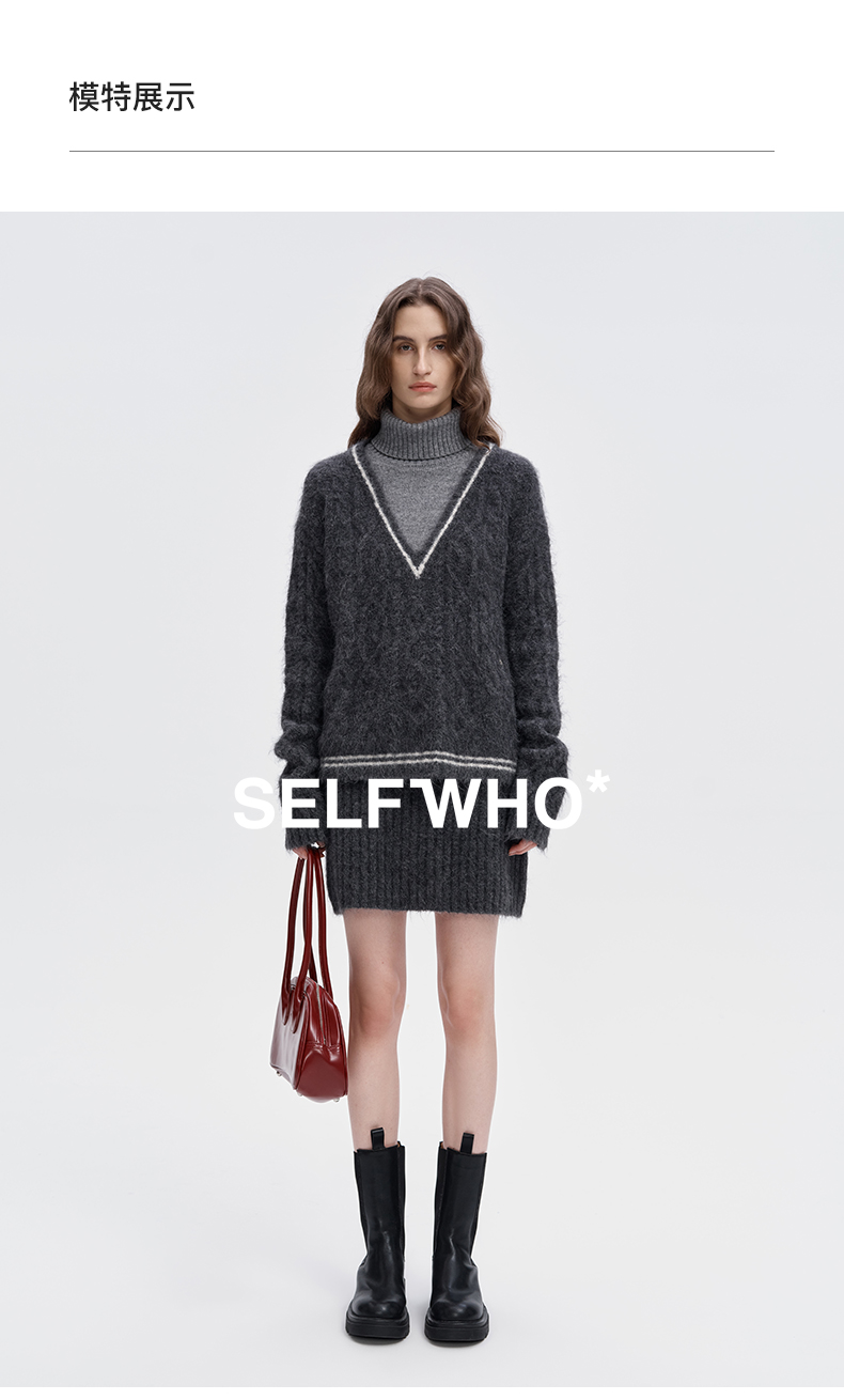 SELFWHO羊驼毛混纺假两件针织衫短裙两件套女2024冬经典百搭套装