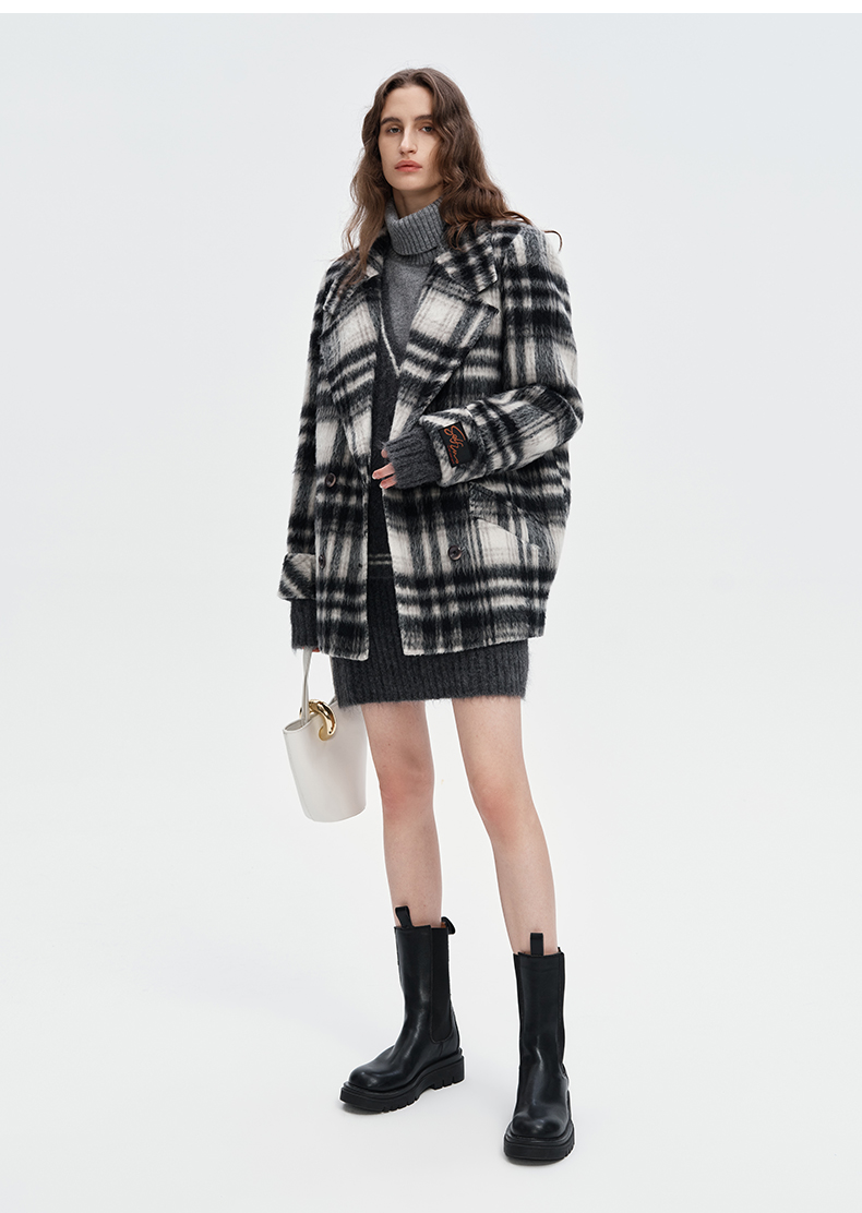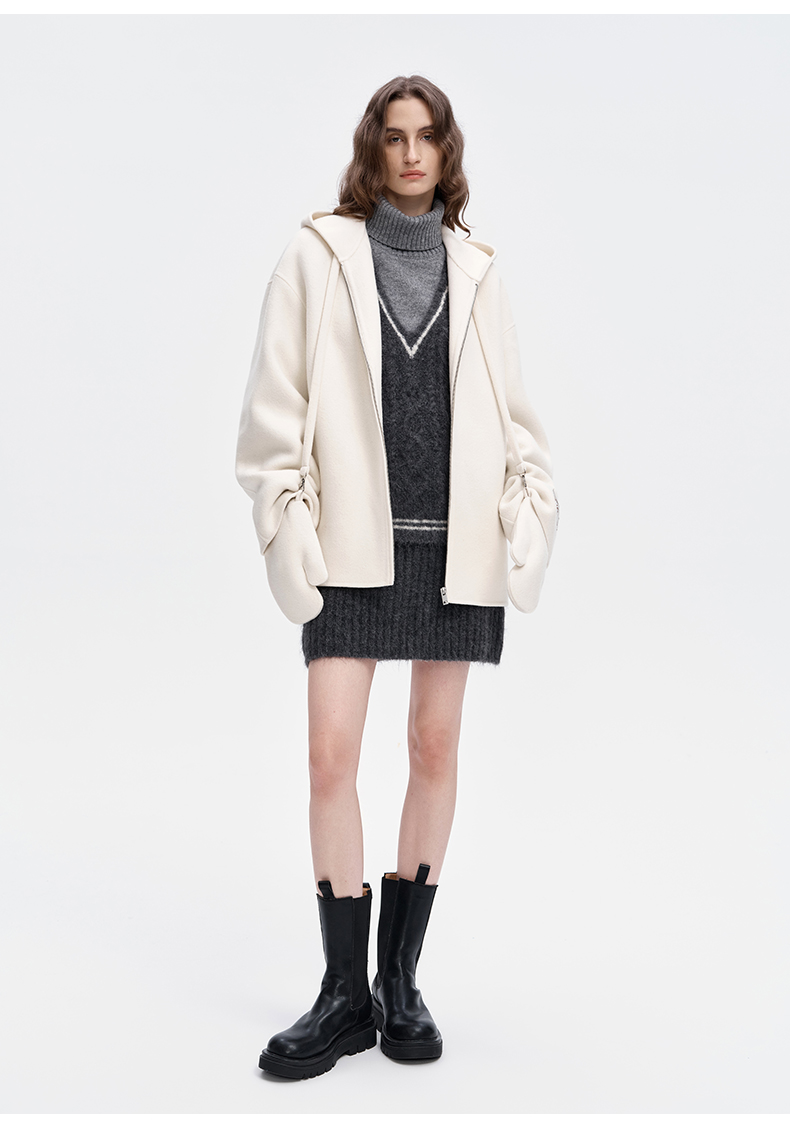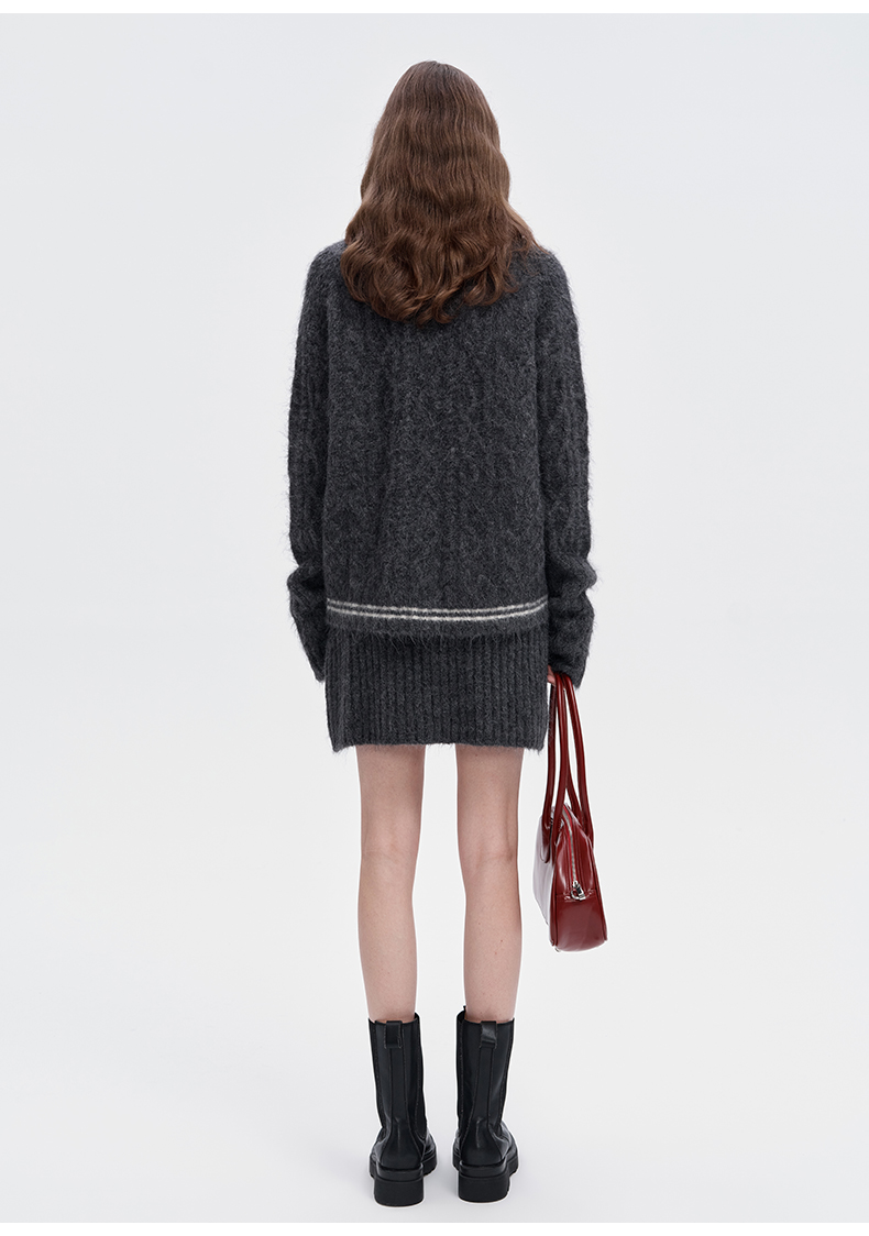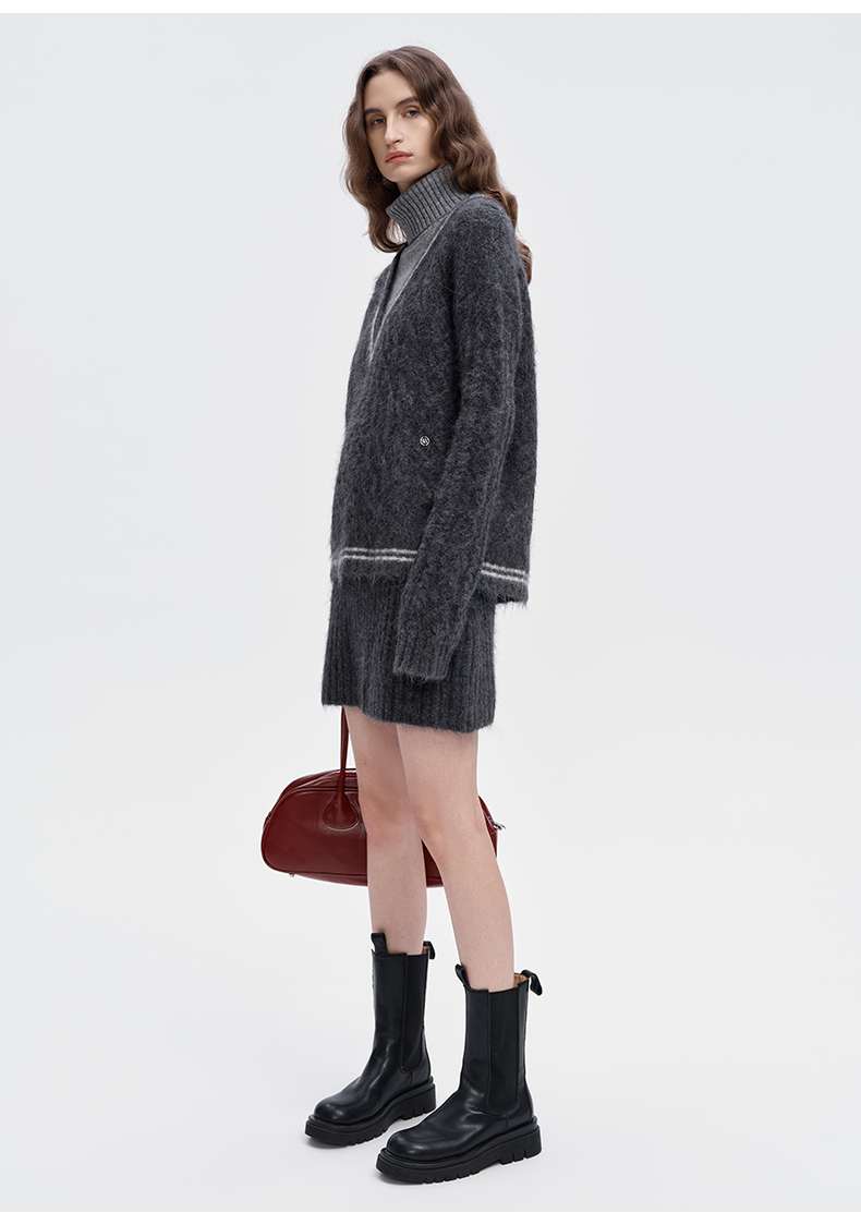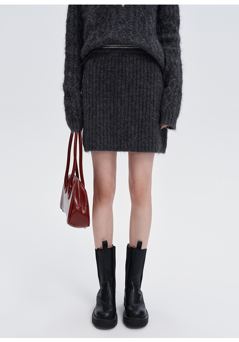 SELFWHO羊驼毛混纺假两件针织衫短裙两件套女2024冬经典百搭套装
