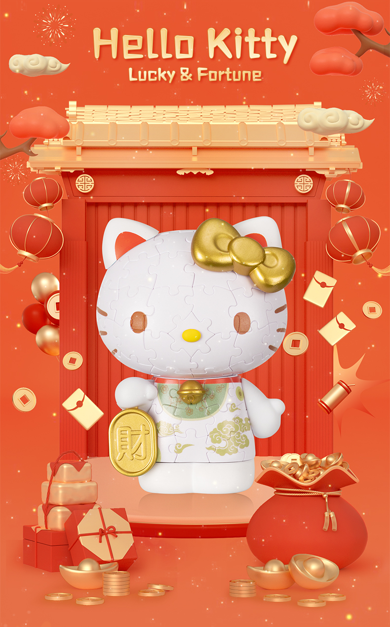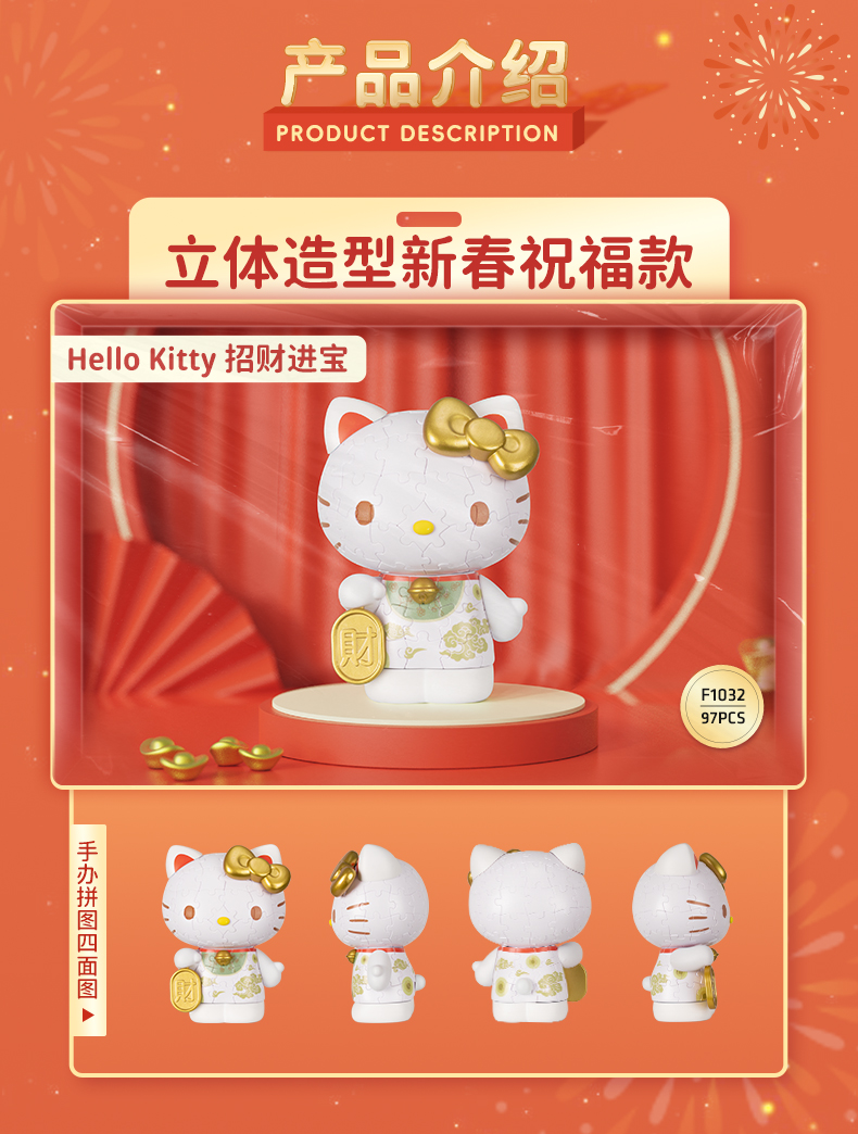 97片 F1032 Hello Kitty立体造型拼图系列-招财进宝