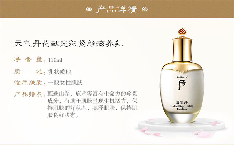 甄选特别研制的山参玉珠、鹿茸骨粉及黄金竹木等富含生命力的珍贵成分,质地粘稠,犹如精华般赋予肌肤营养,使肌肤焕发莹润光彩。