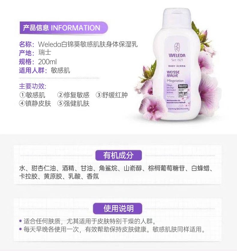 【保税仓】WELEDA维蕾德白锦葵婴儿润肤乳200ML