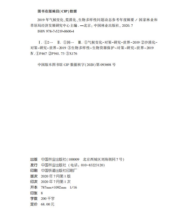 现货 气候变化、生物多样性和荒漠化问题动态参考年度辑要2019年国家林业和草原局经济发展研究中心 主编 中国林业出版社0600