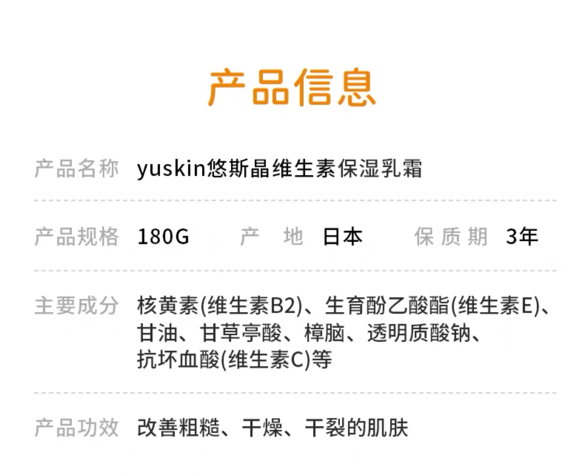 【保税仓cn】Yuskin/悠斯晶维生素护手霜手足干燥滋润霜按压式180g