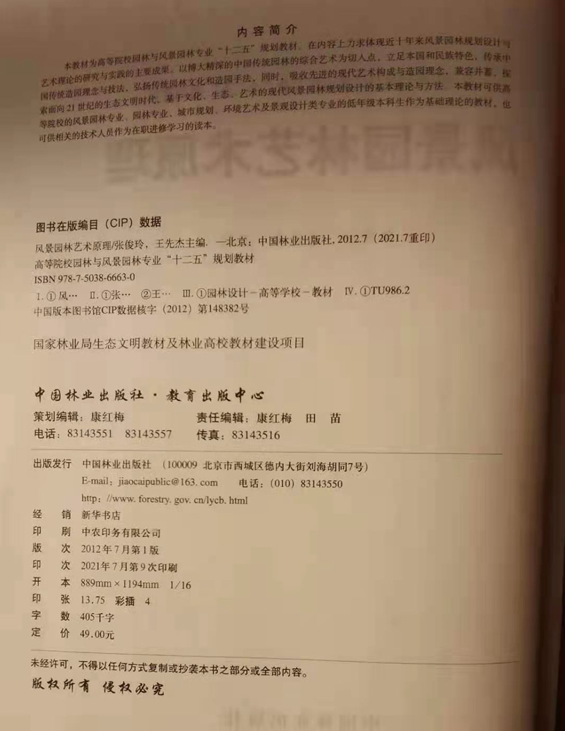 风景园林艺术原理 6663 张俊玲王先杰 高等院校园林与风景园林专业规划教材 中国林业出版社 正版畅销书2021年第9次印刷