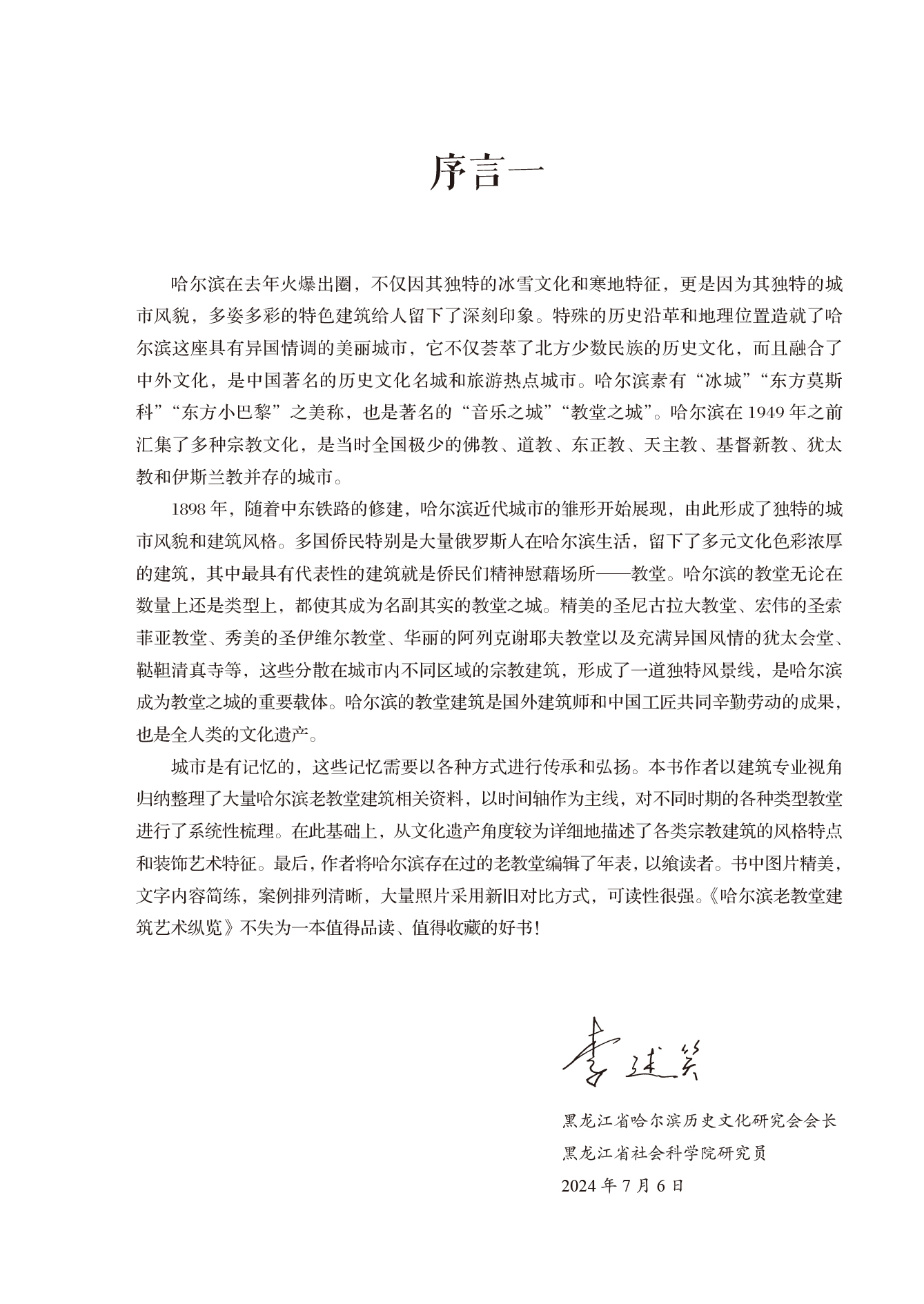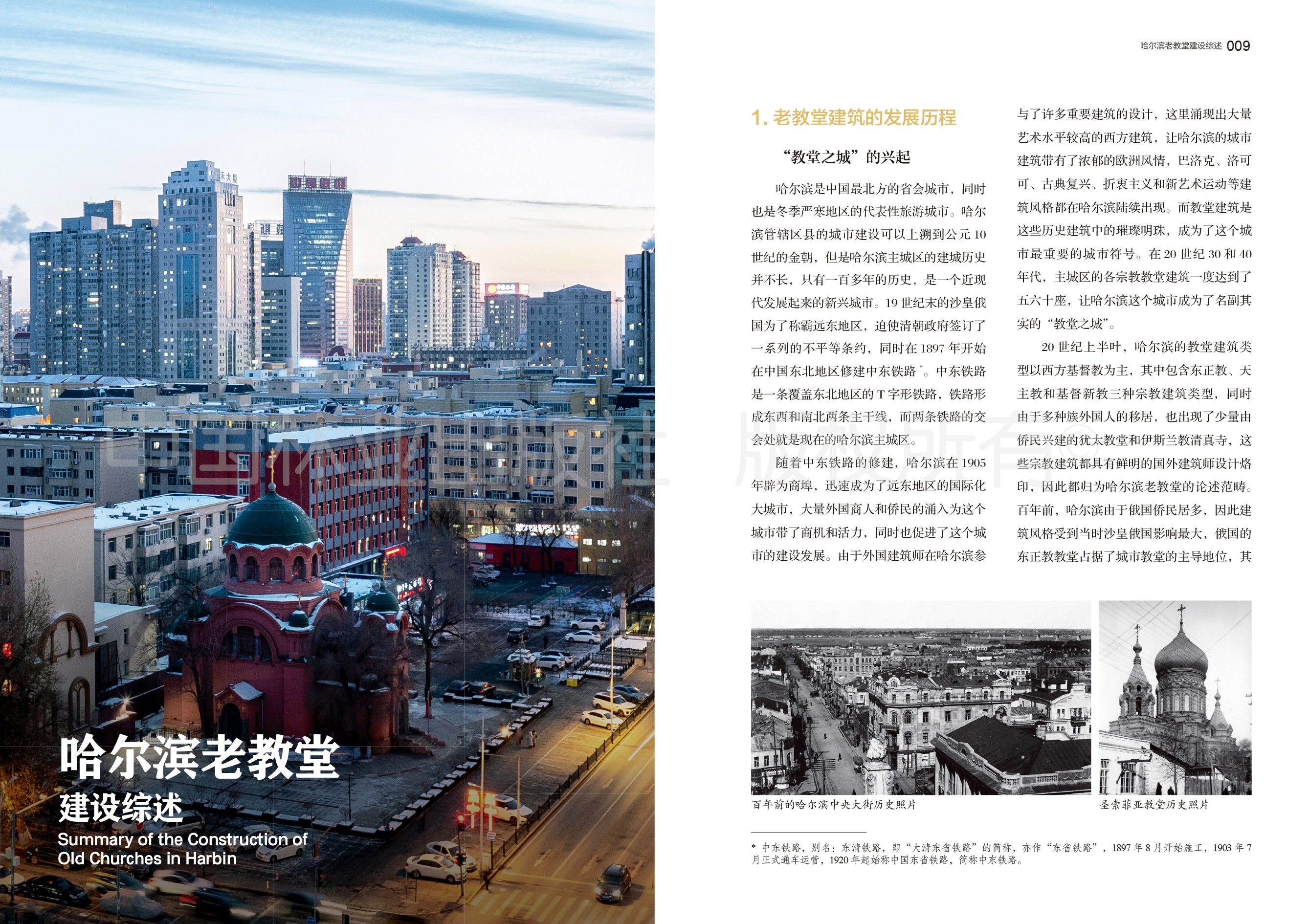 ·第一部分 哈尔滨老教堂建设综述。带您回顾哈尔滨老教堂的建筑发展历程,深入了解其风格特征与装饰艺术,以及当代教堂的发展现状。