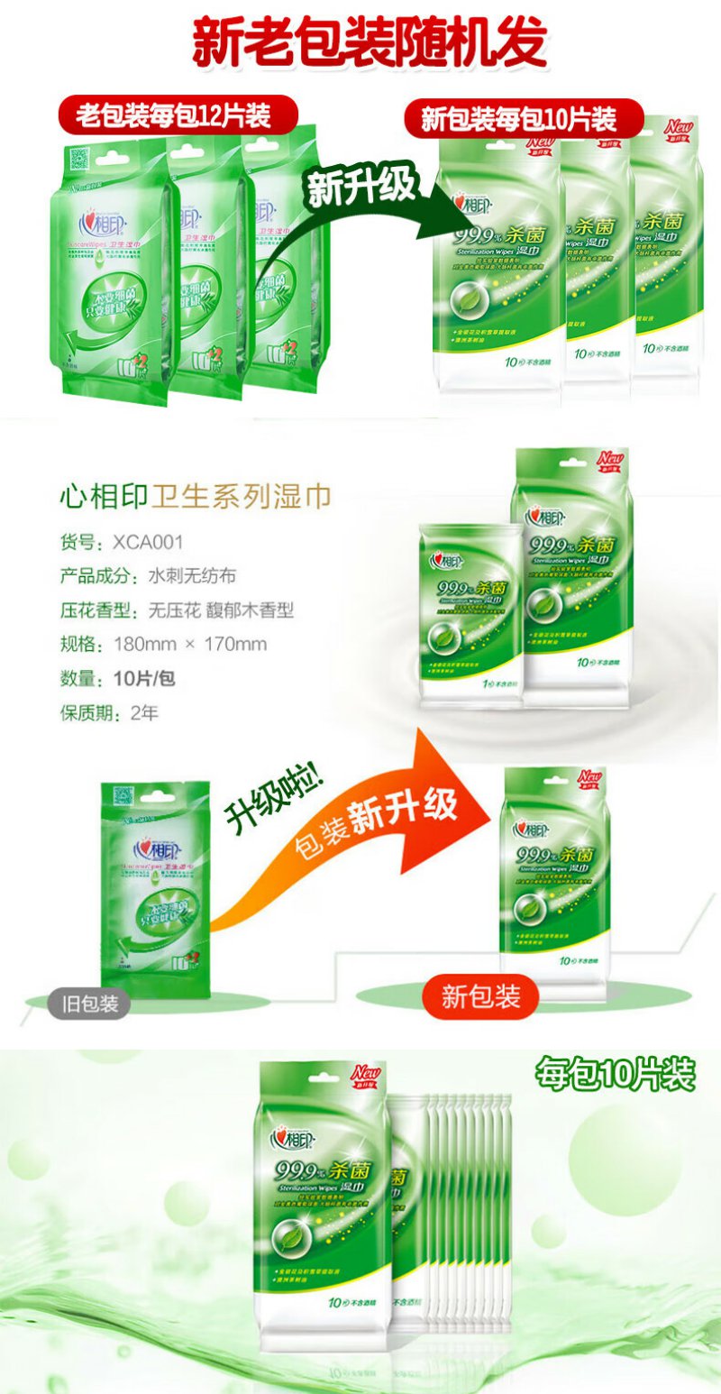 心相印 湿巾 卫生系列单片装湿巾便携随身装 10片*12包 XCA001