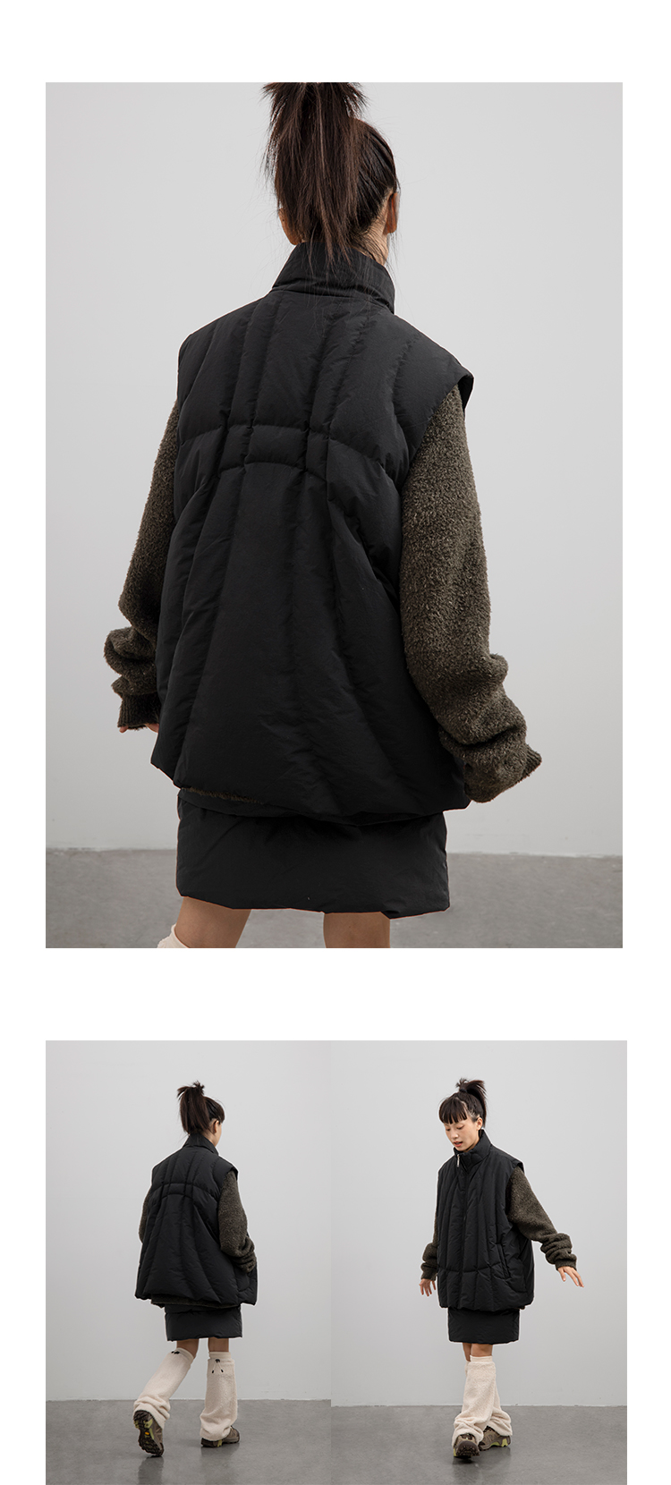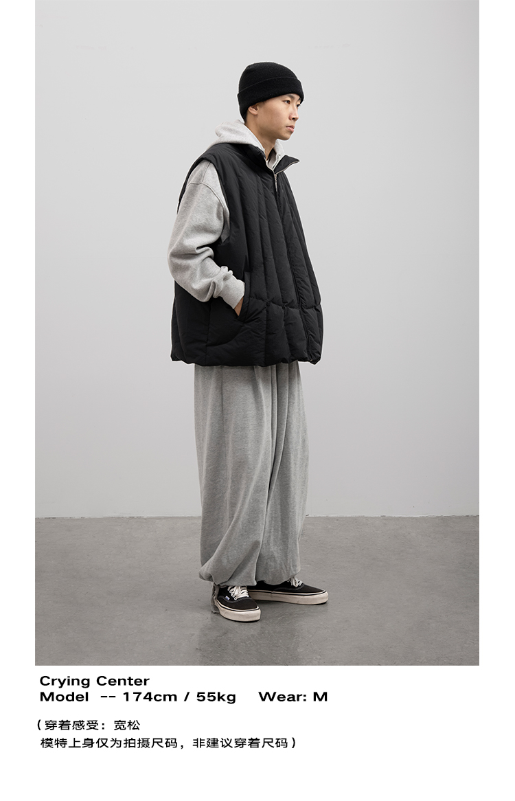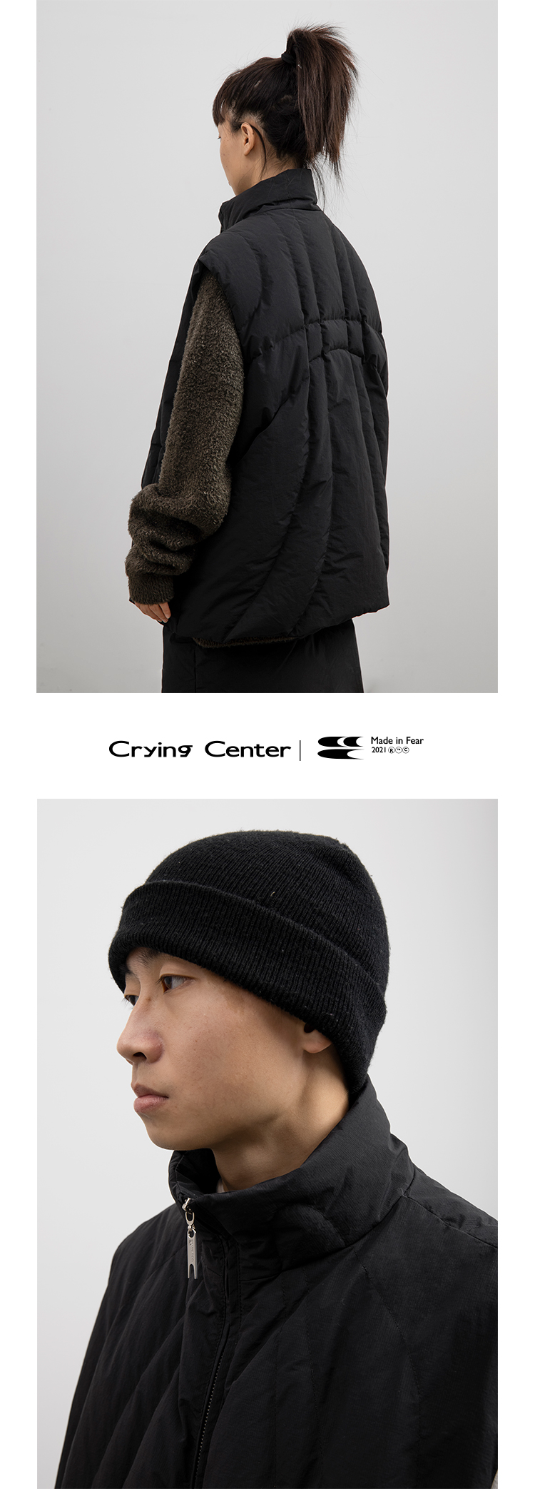 cryingcenter 黑色情侣羽绒服马甲 百搭包裹包裹感背心 哭喊中心