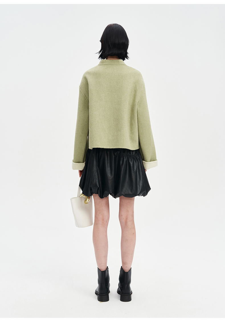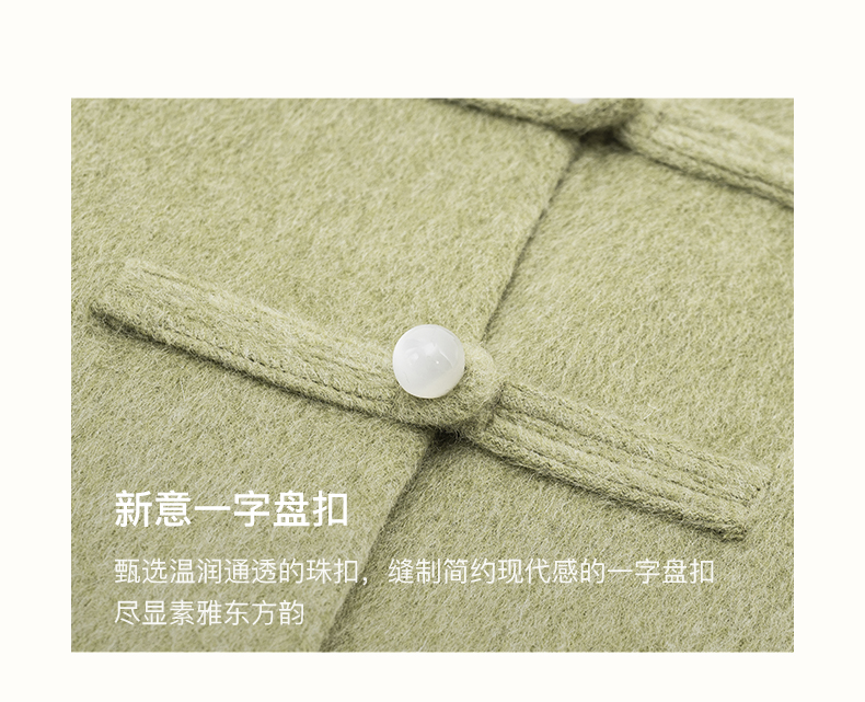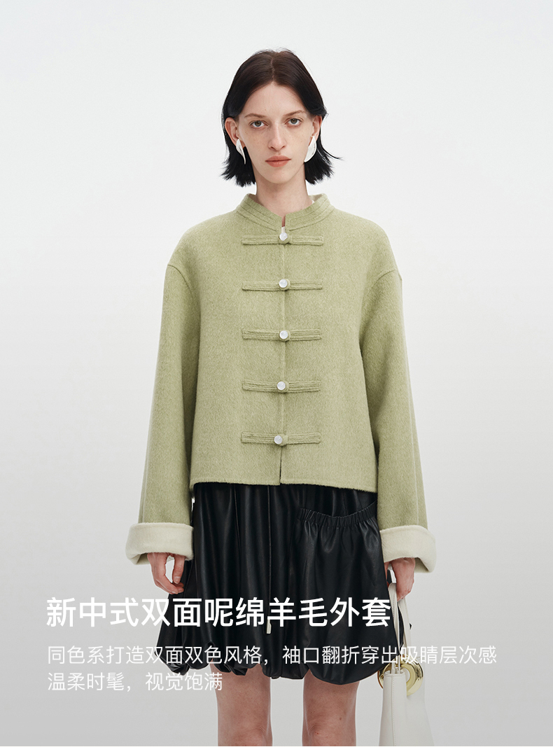 SELFWHO绵羊毛新中式双面呢大衣外套女2025春宽松国风绿色短上衣