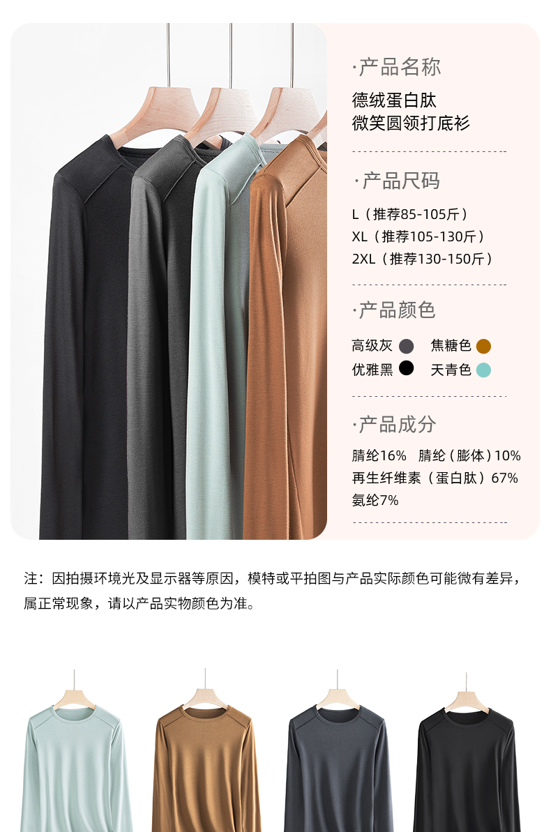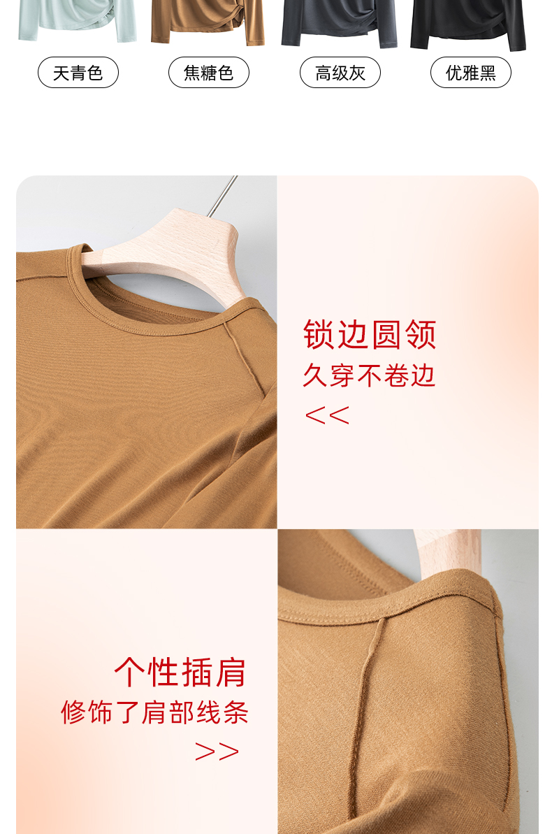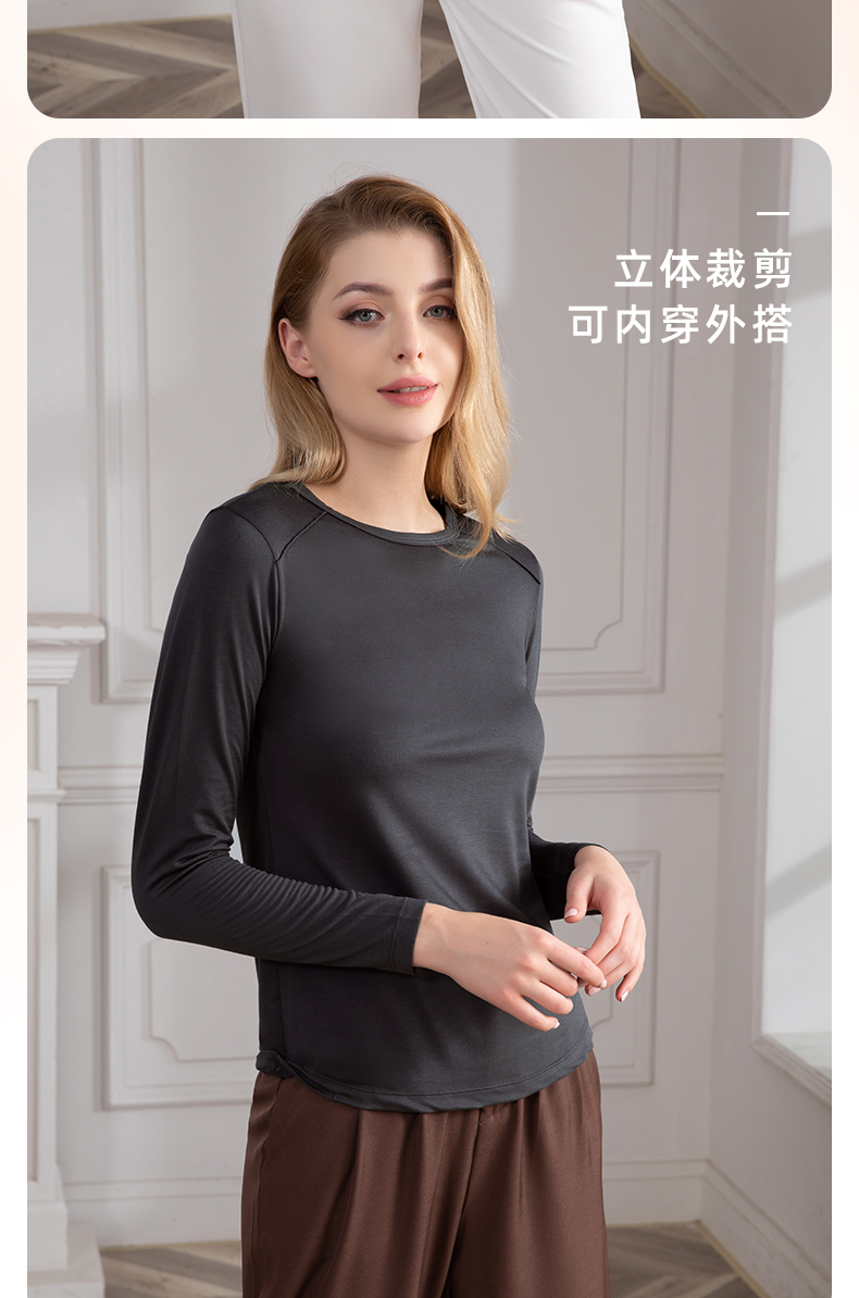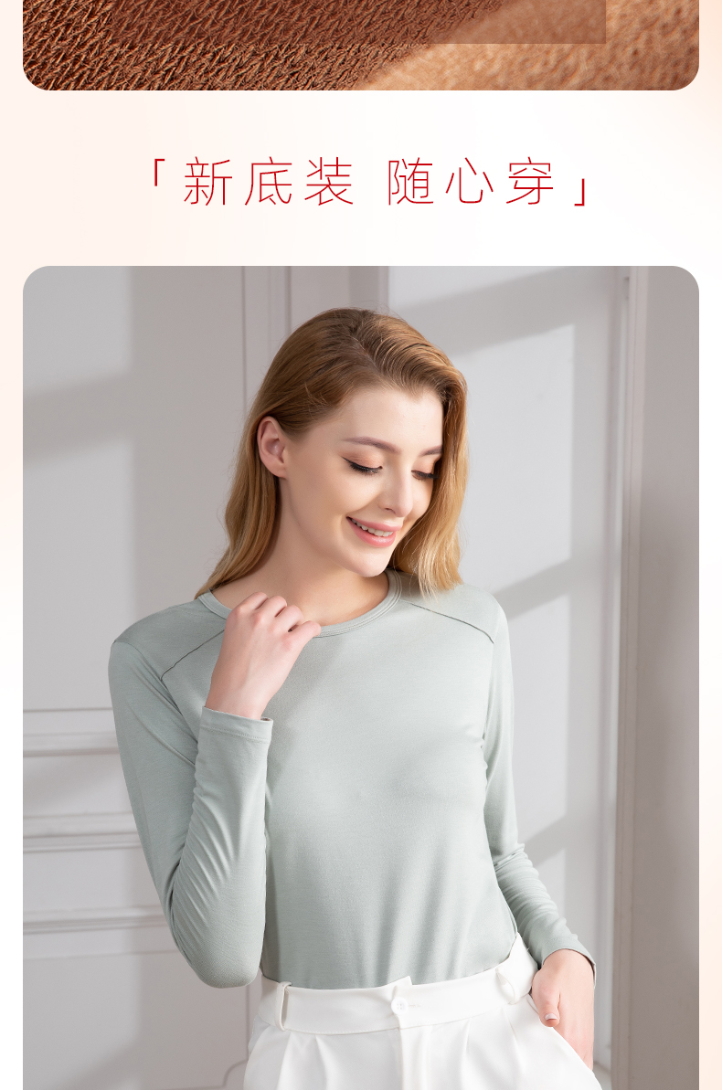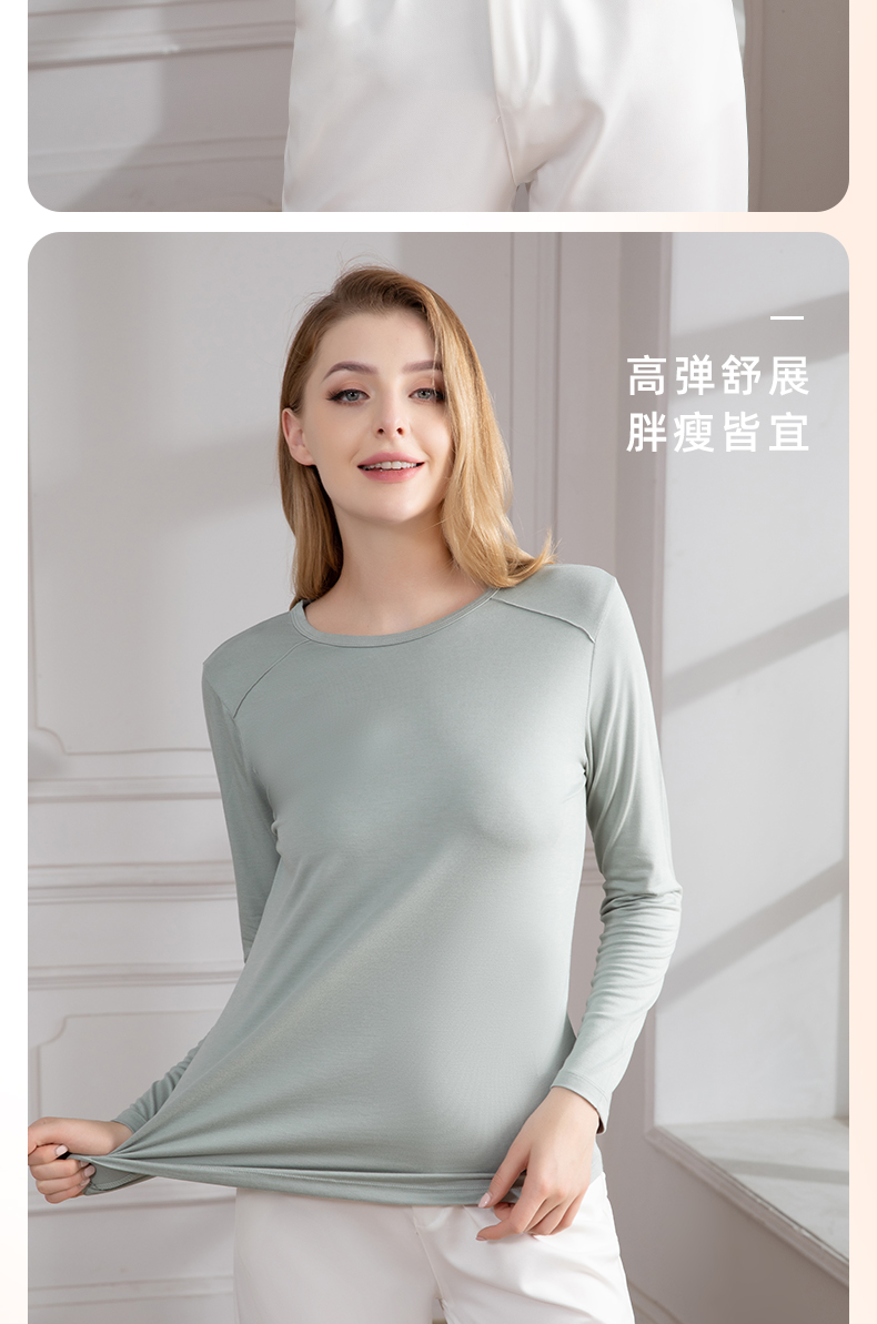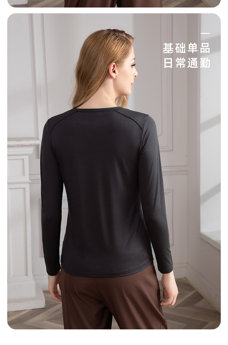 女士德绒通勤百搭打底高弹保暖内衣圆领女上装秋冬打底H223050558
