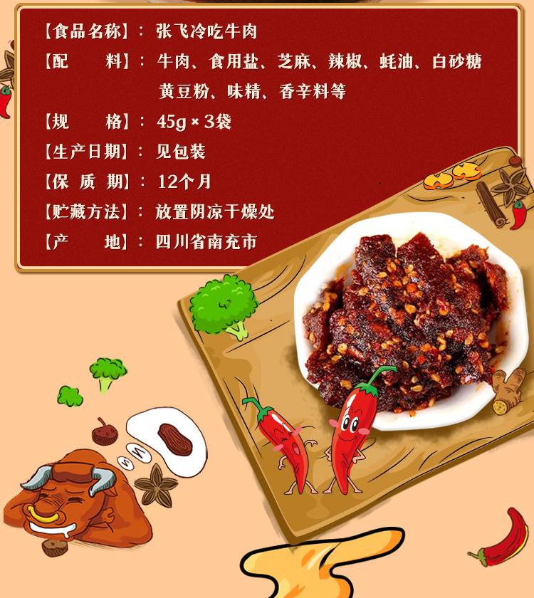 张飞冷吃牛肉香辣味 45g*3袋装