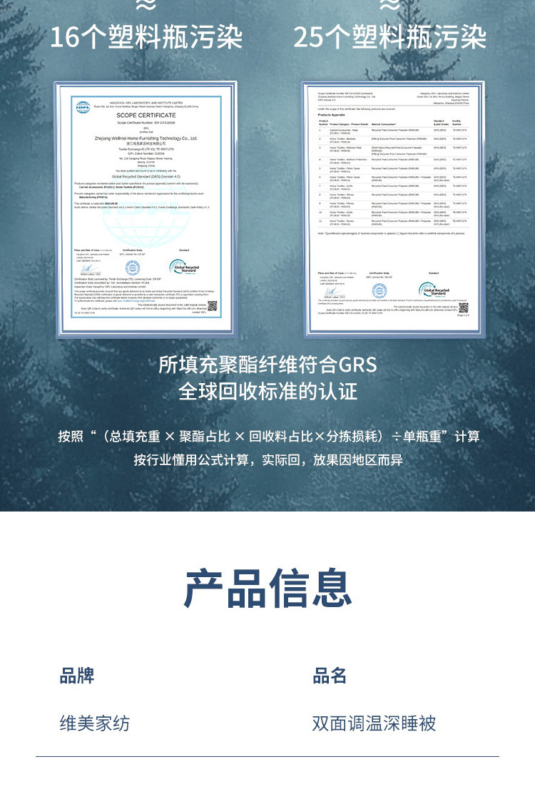 维美双面调温深睡被【凉感值 0.347】天丝填充OEKO 认证A 类母婴认证整被可机洗