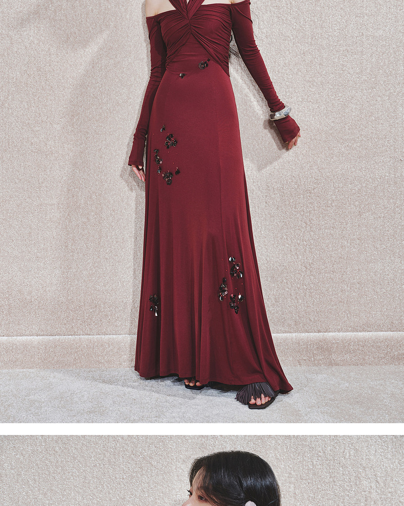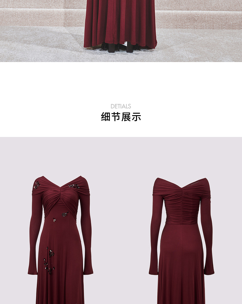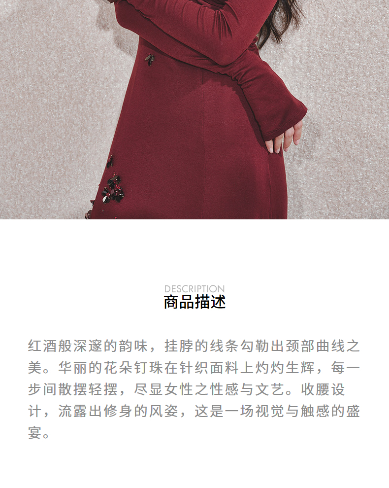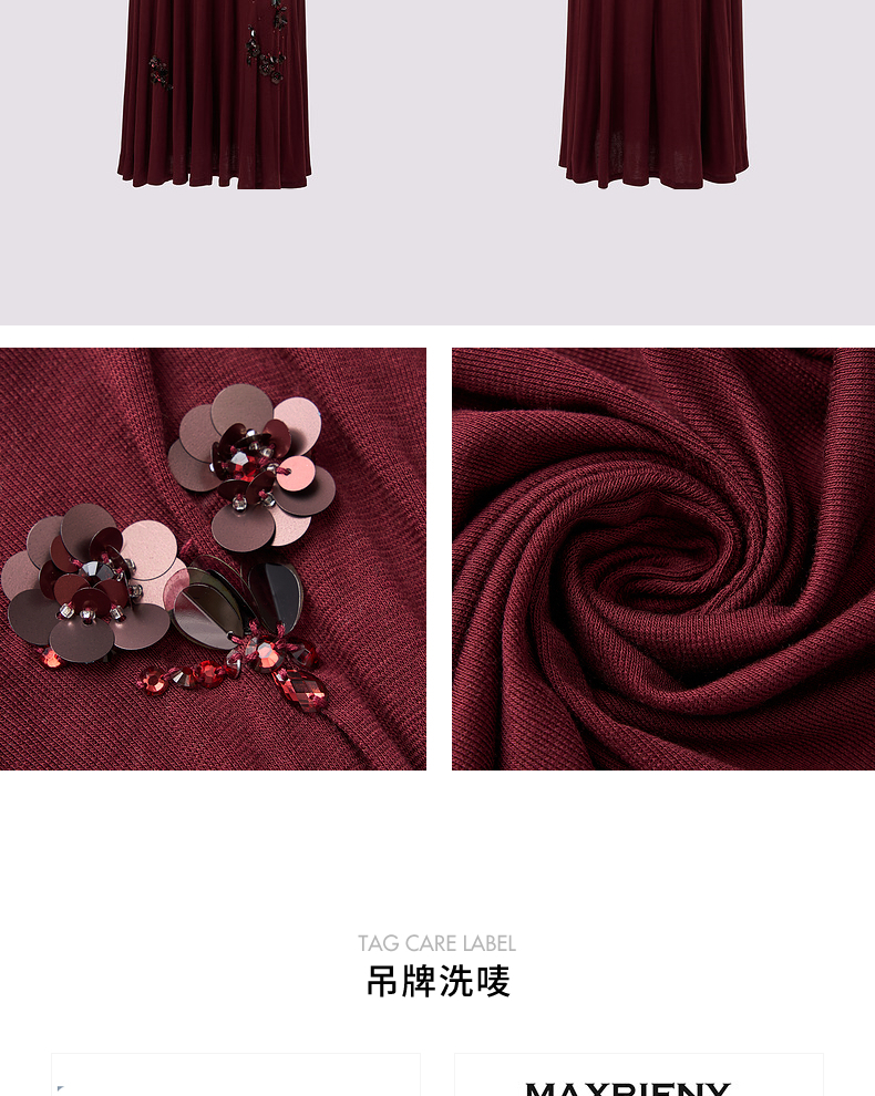 玛克门店发货:MAXRIENY酒红针织性感钉珠连衣裙(货号:MC85DR563)