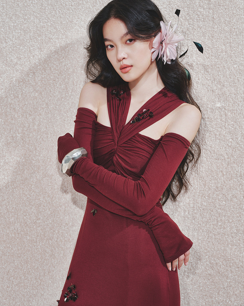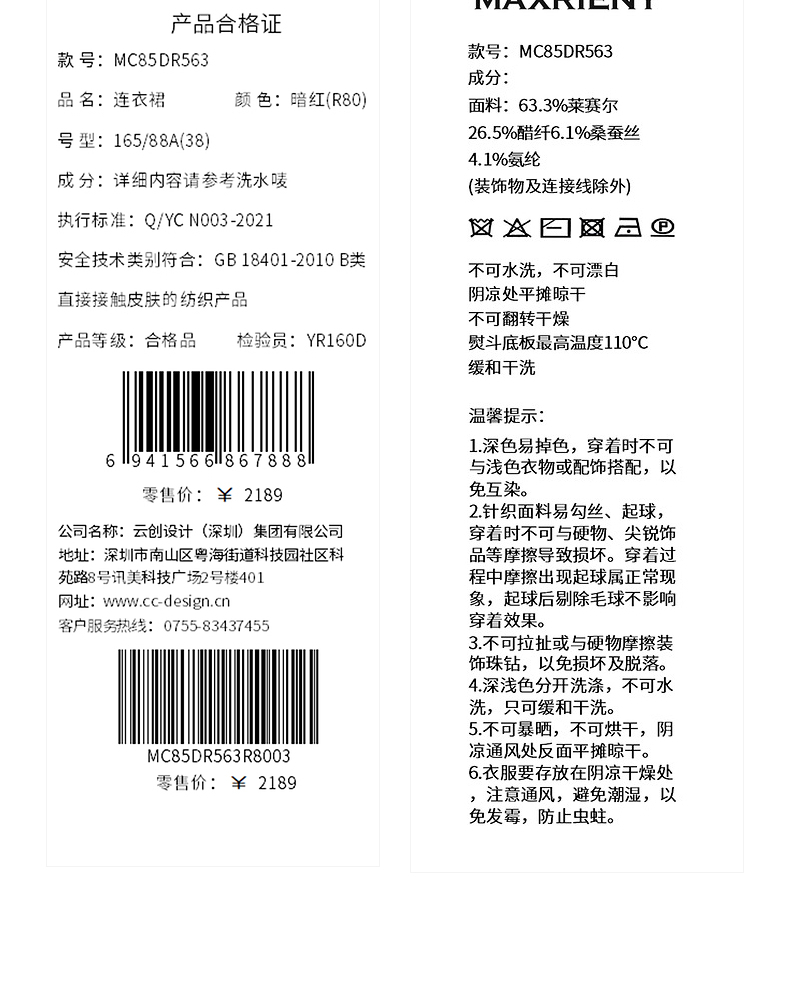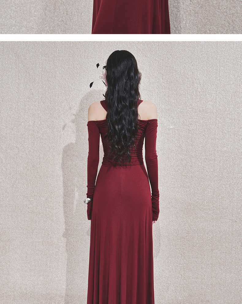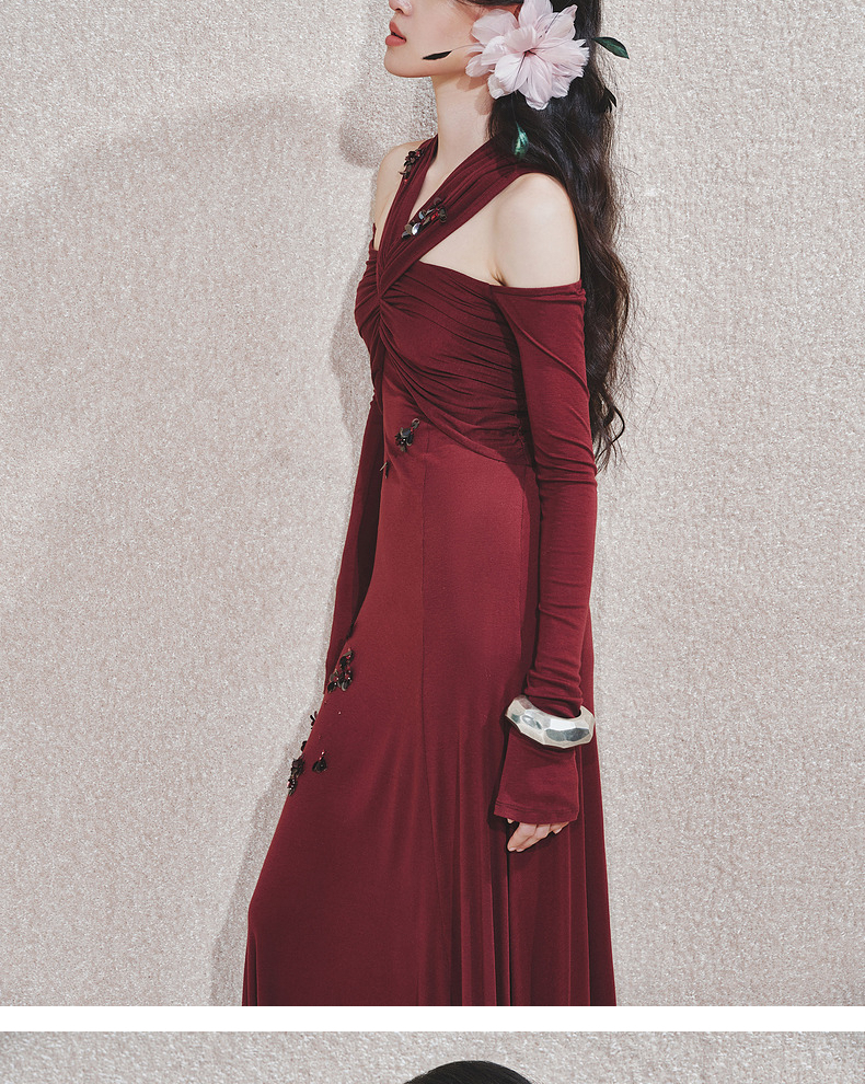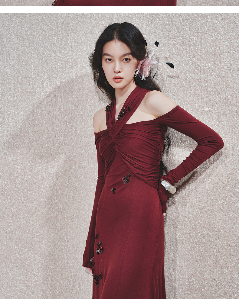 玛克门店发货:MAXRIENY酒红针织性感钉珠连衣裙(货号:MC85DR563)