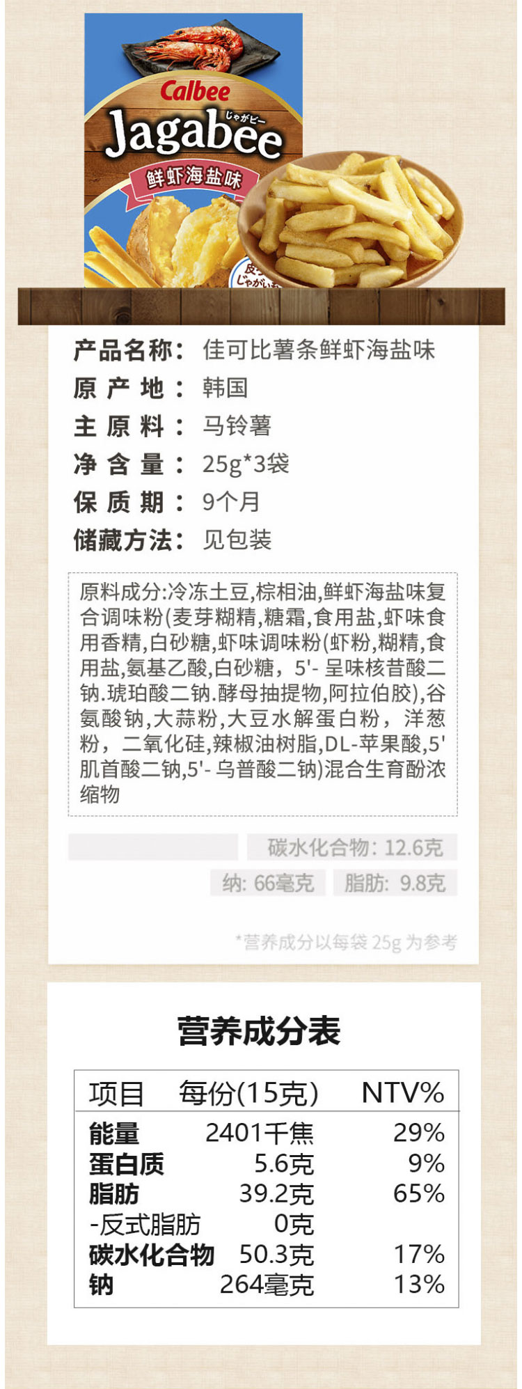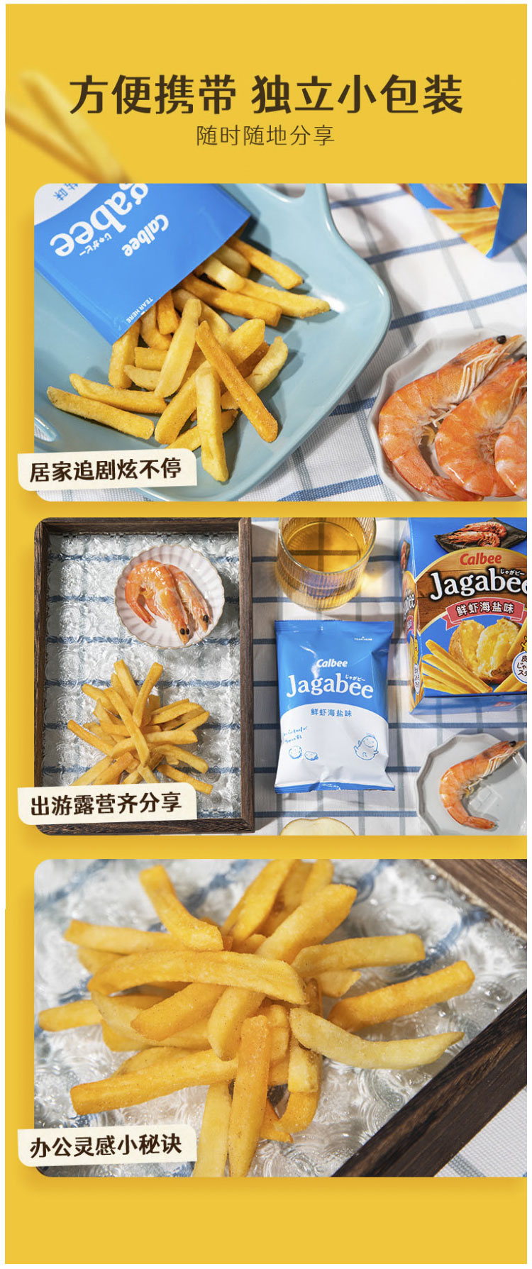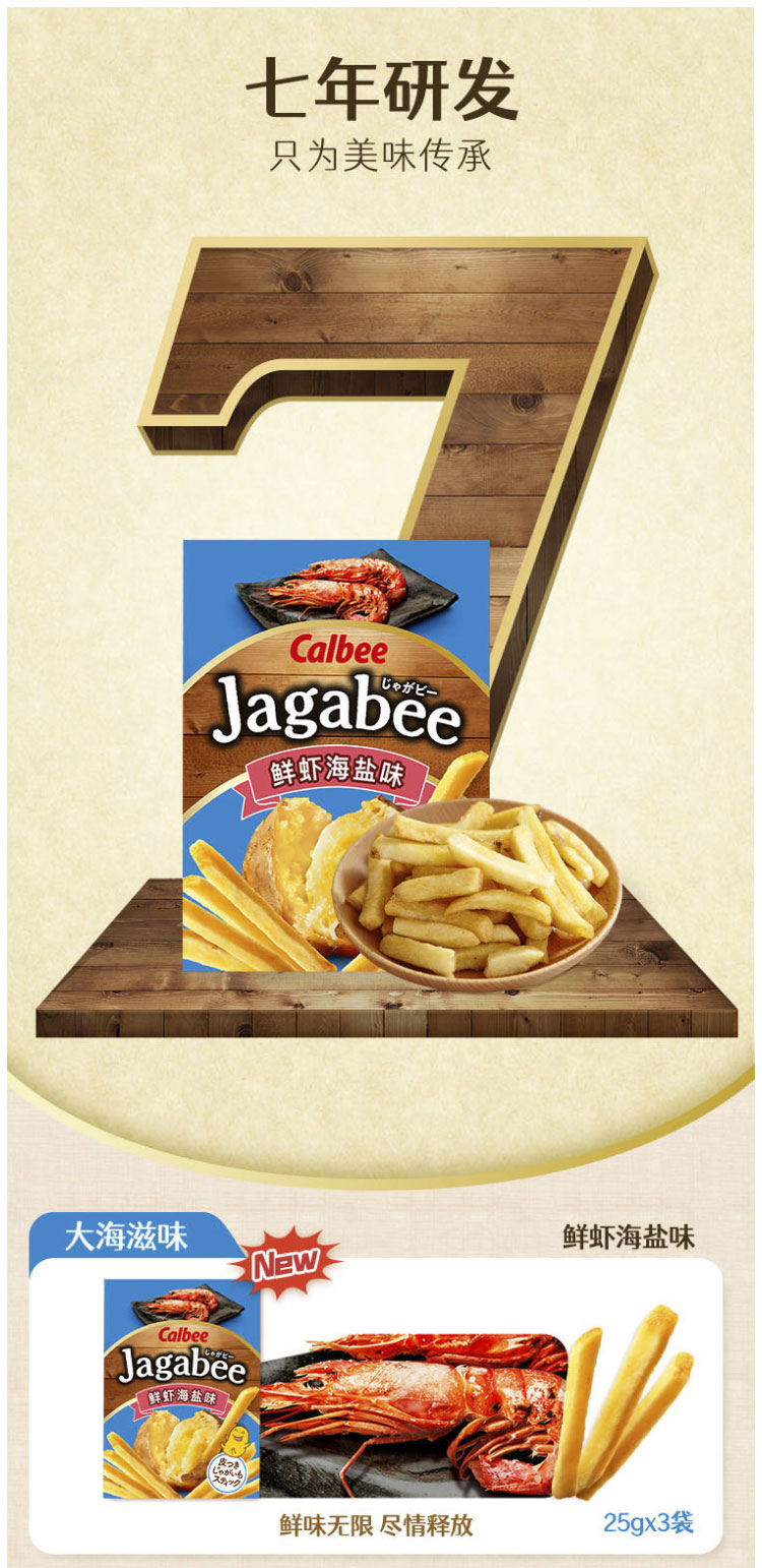Calbee牌 Jagabee 鲜虾海盐味薯条 (膨化食品) 75克