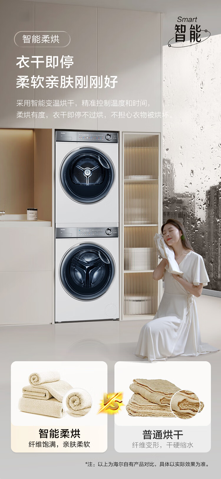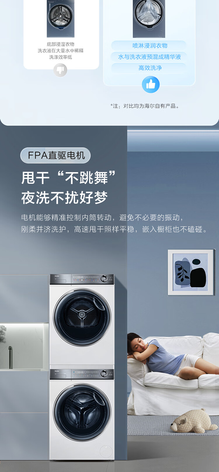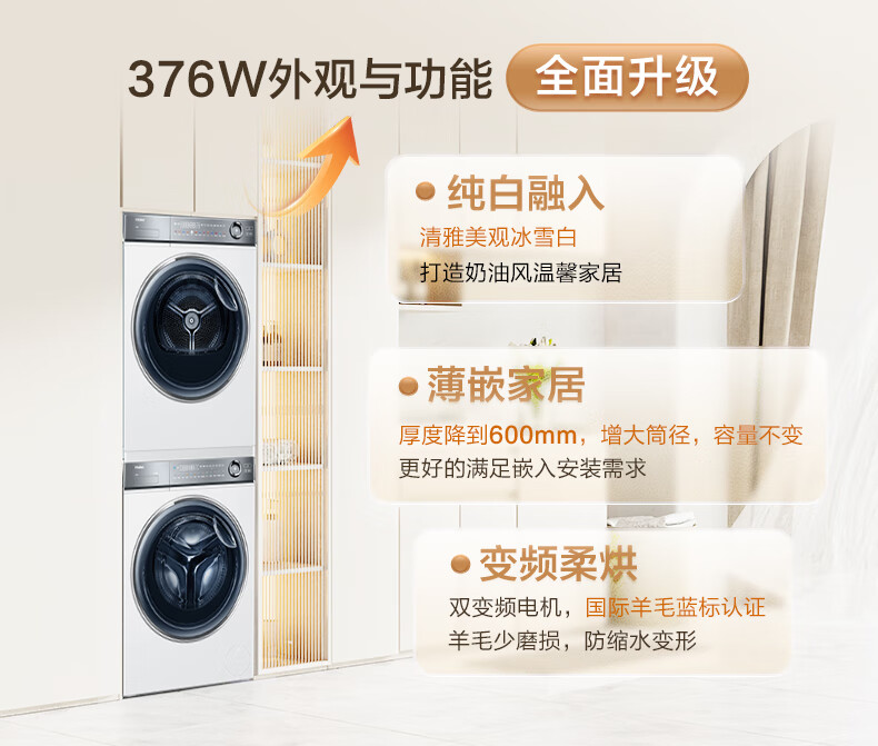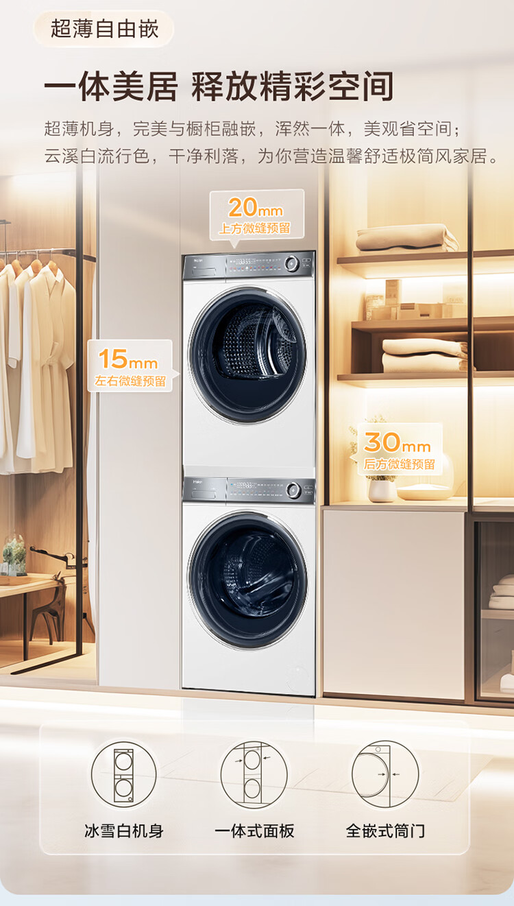 海尔XQG100-BD14376LWU1+HGY100-F376WU1超薄平嵌376W白洗烘套装 10Kg精华洗滚筒洗衣机+双擎热泵烘干机 羊毛蓝标