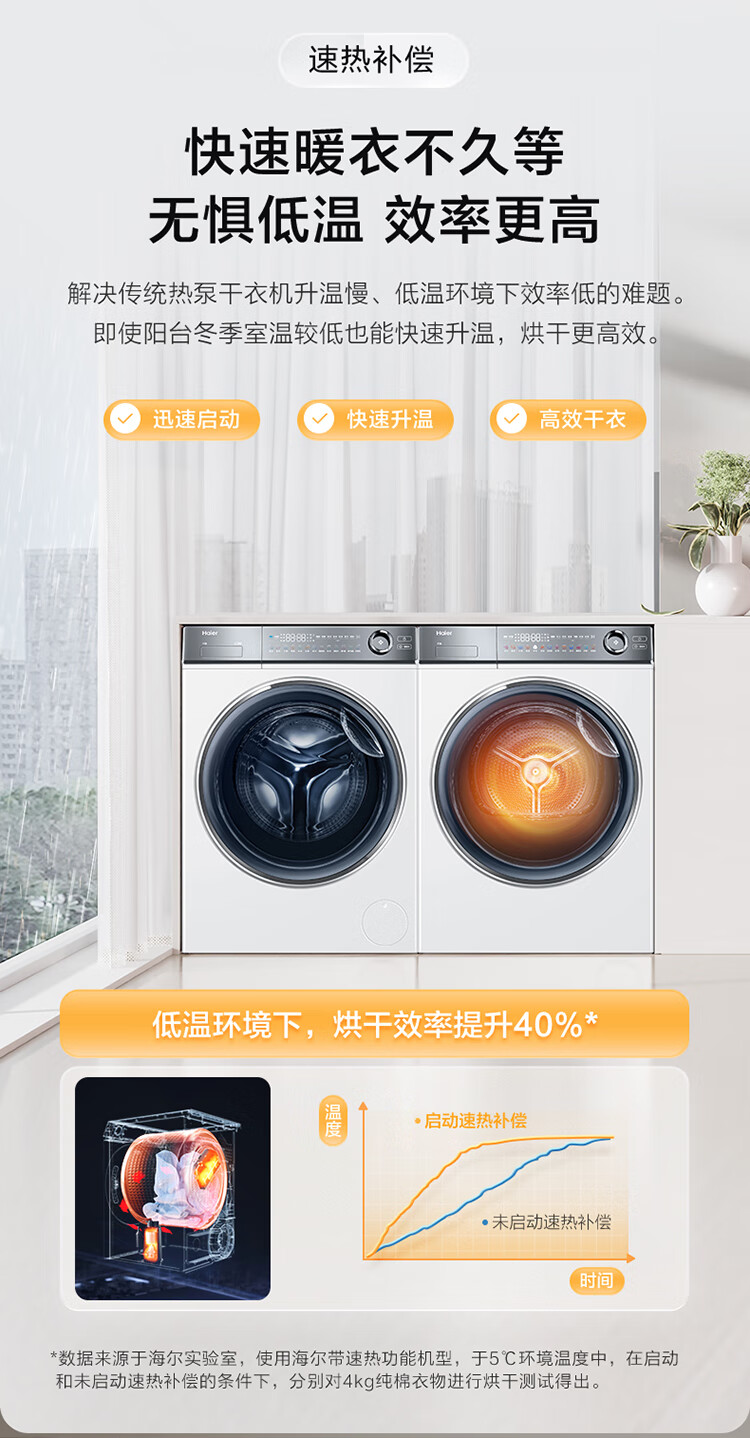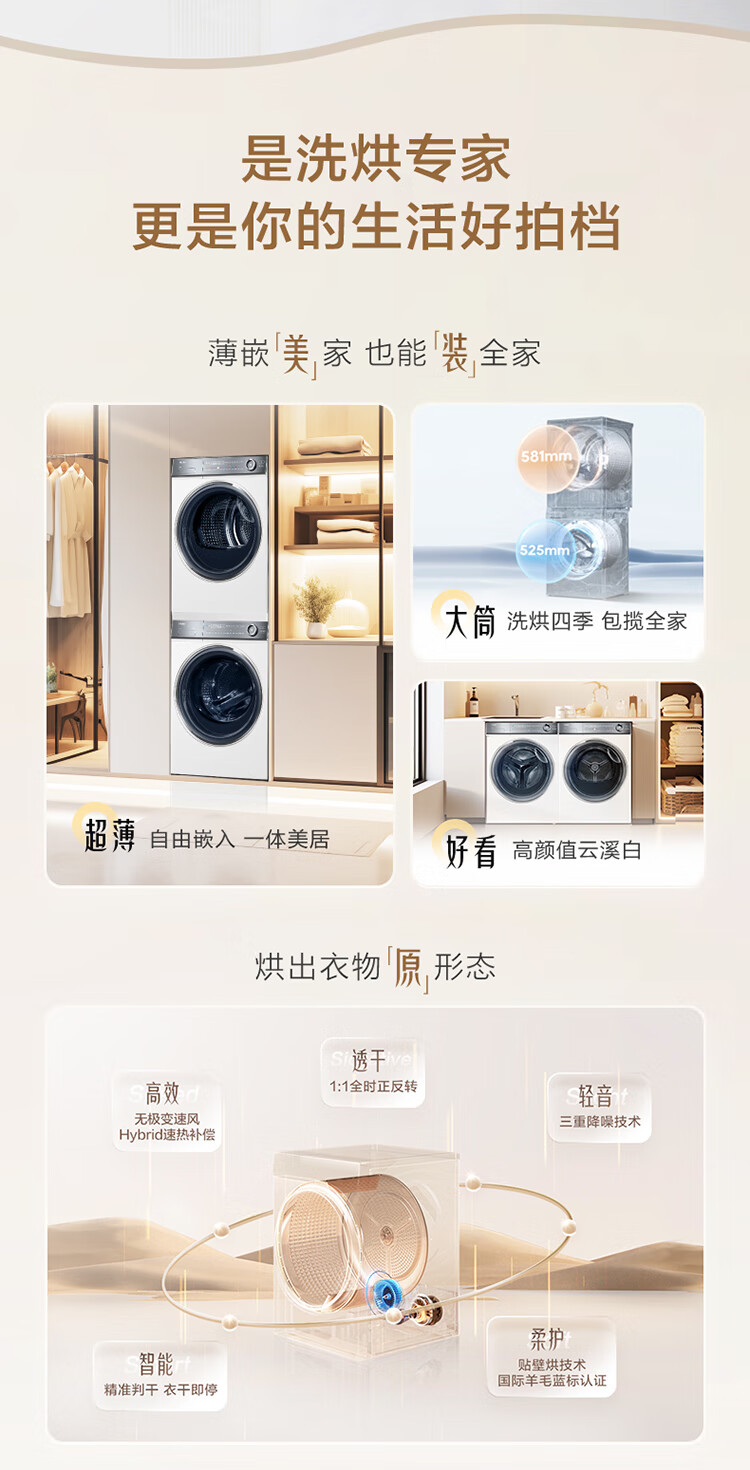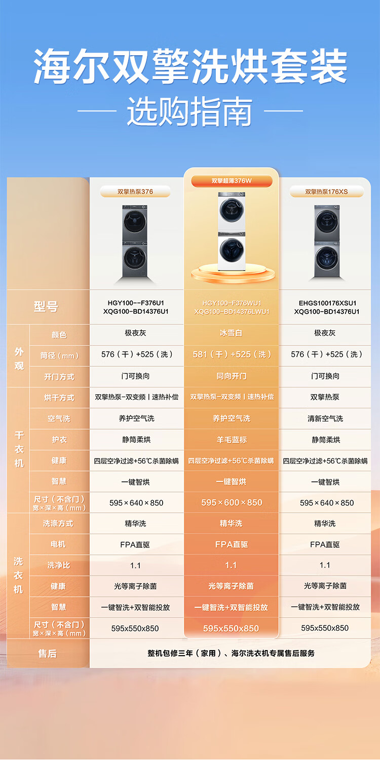 海尔XQG100-BD14376LWU1+HGY100-F376WU1超薄平嵌376W白洗烘套装 10Kg精华洗滚筒洗衣机+双擎热泵烘干机 羊毛蓝标