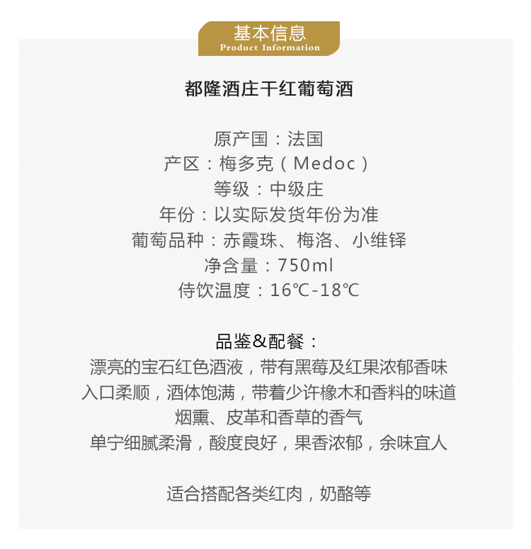 法国都隆酒庄干红葡萄酒750ml*6