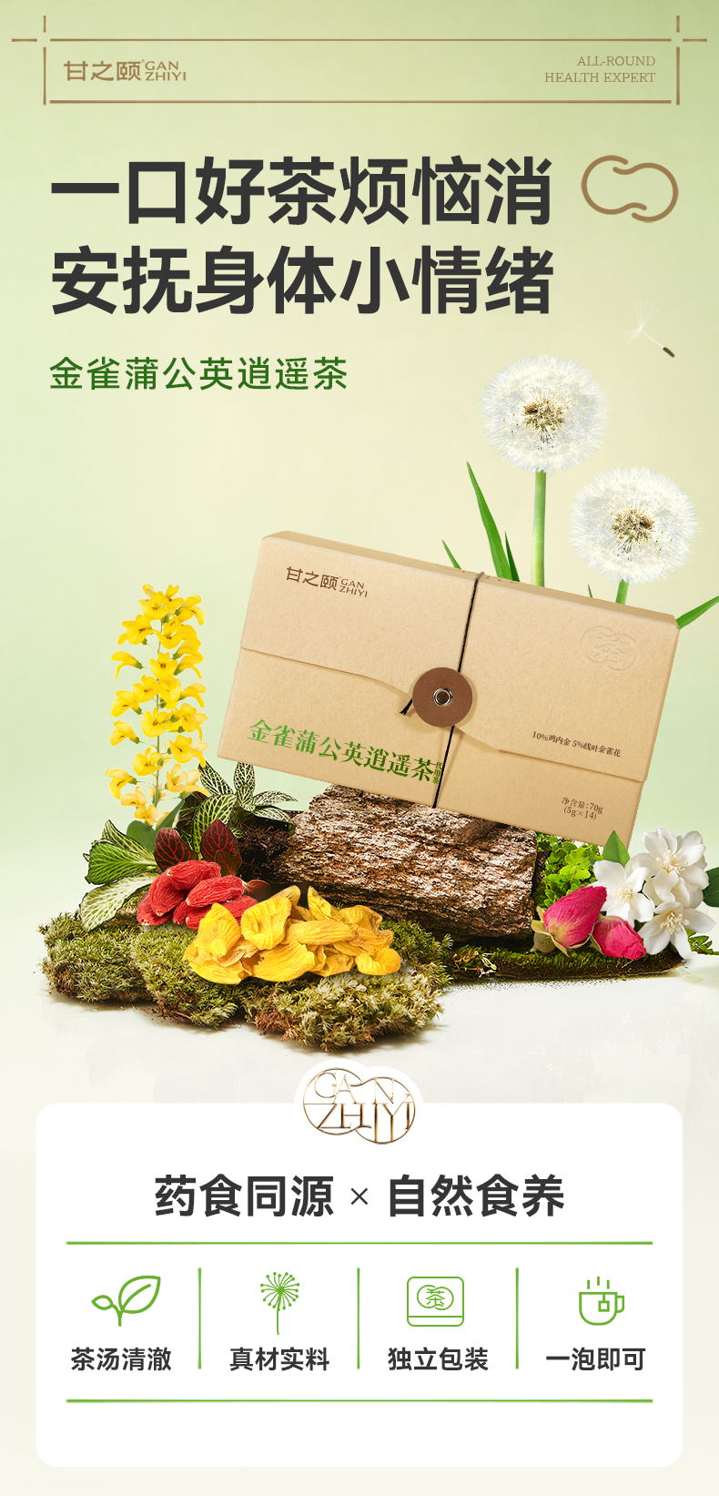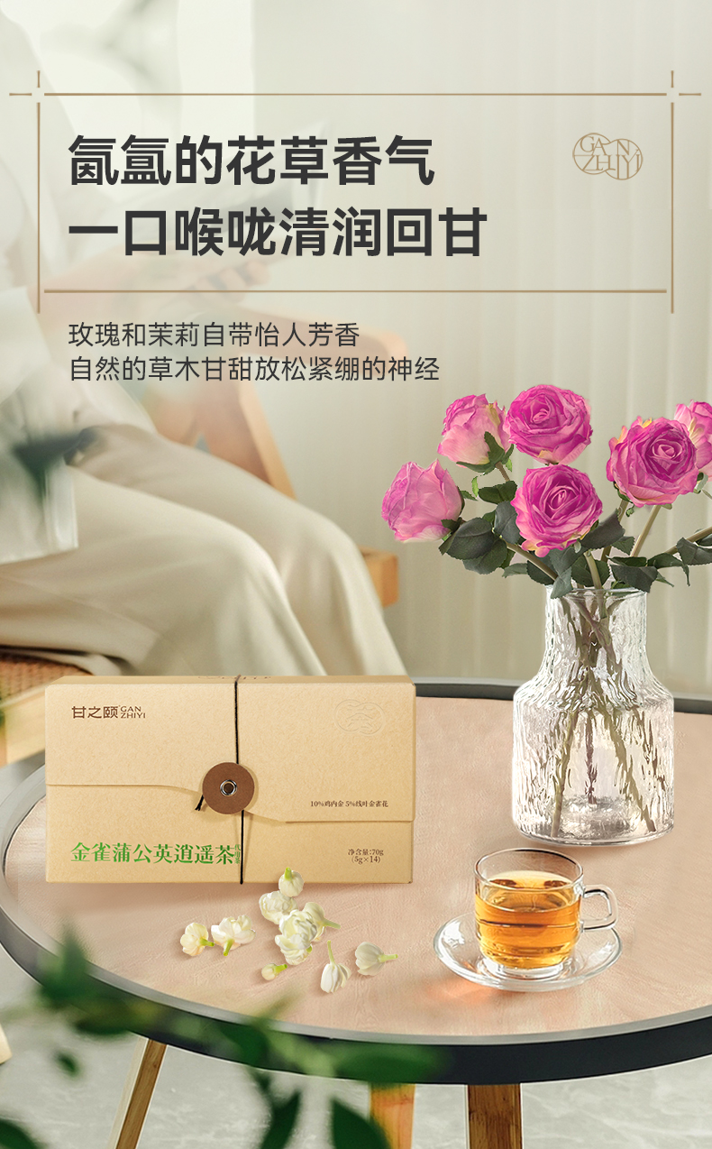 【限时秒杀59.9/3盒,89/5盒】甘之颐 金雀蒲公英逍遥茶 5g*14包/盒 蒲公英逍遥茶陈皮茉莉花茶养生茶泡水饮品(26年2月到期,介意者慎拍)
