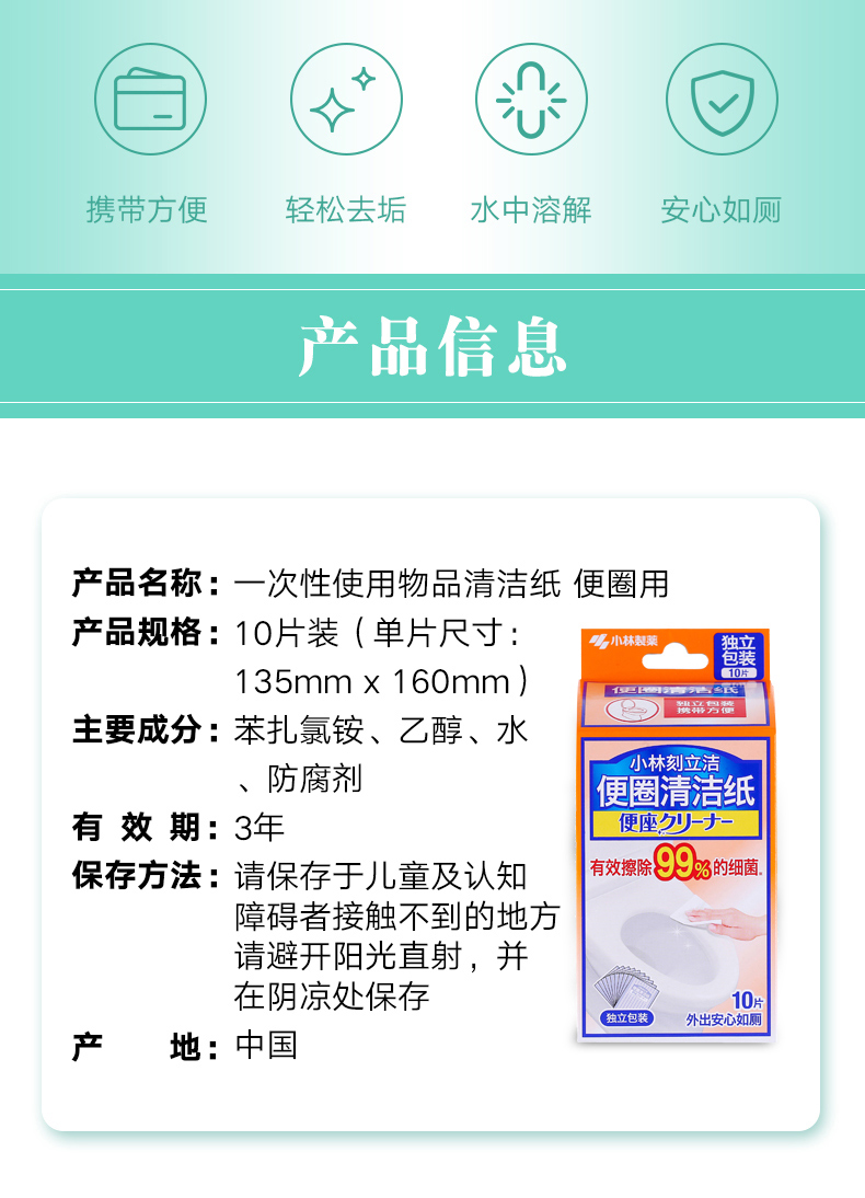 小林制药 刻立洁 便圈清洁纸 10片/盒