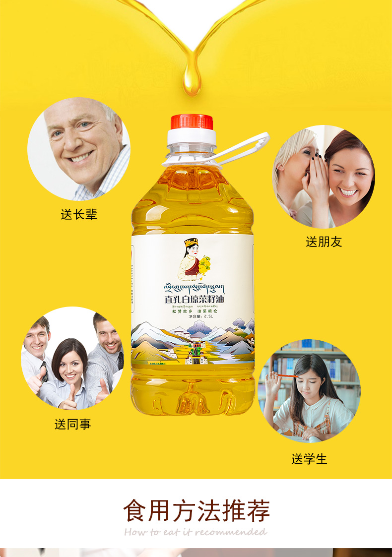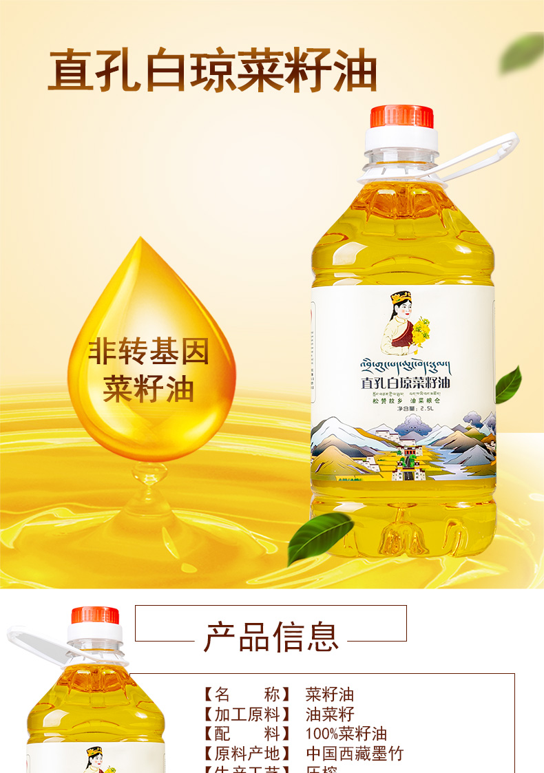 西藏高原菜籽油 直孔白琼菜籽油 1桶2.5L