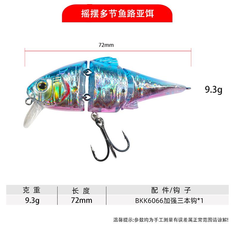 MuLin缓浮泳饵多节鱼三节路亚饵9.3克