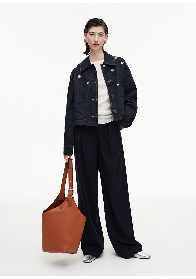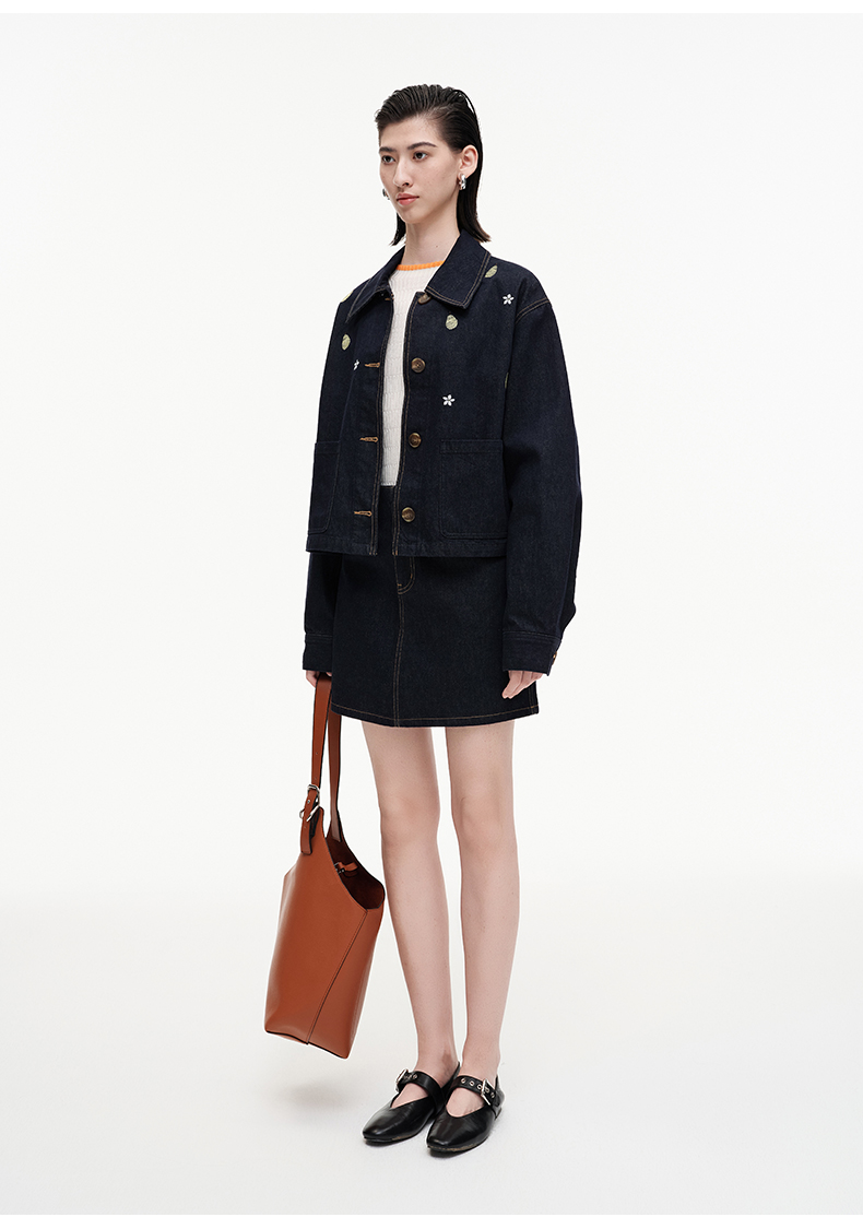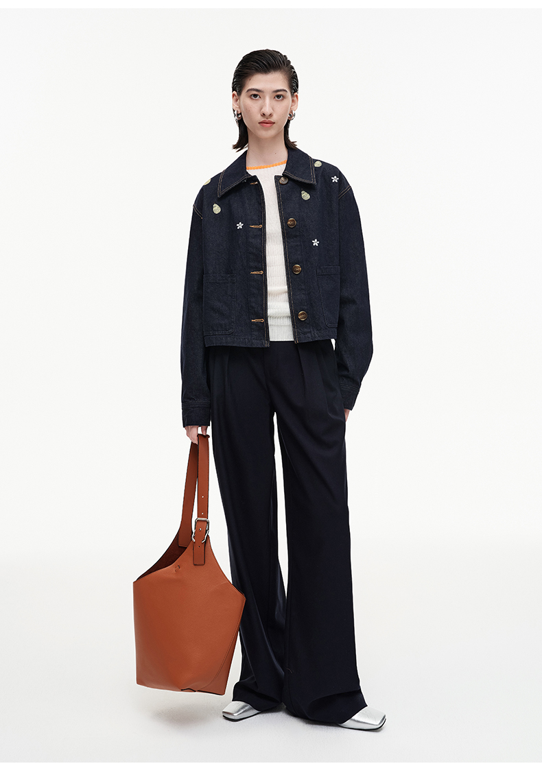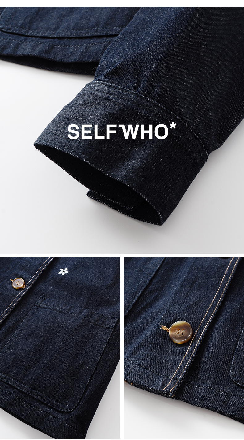 SELFWHO棉混纺原牛风梨花刺绣牛仔外套女2025秋新款复古翻领上衣