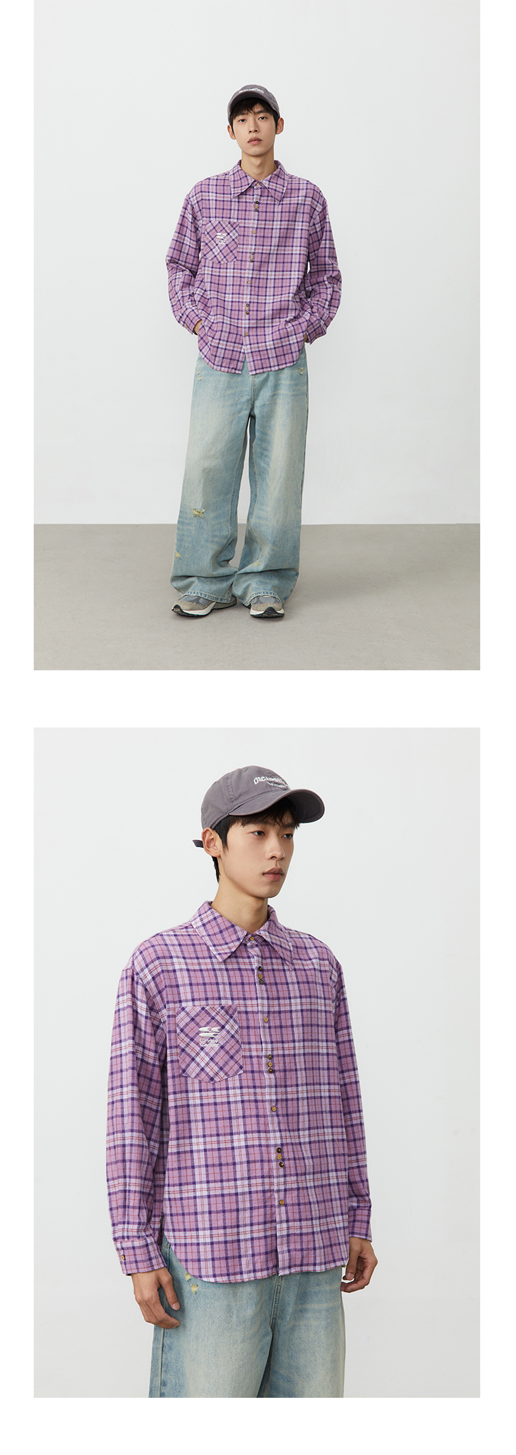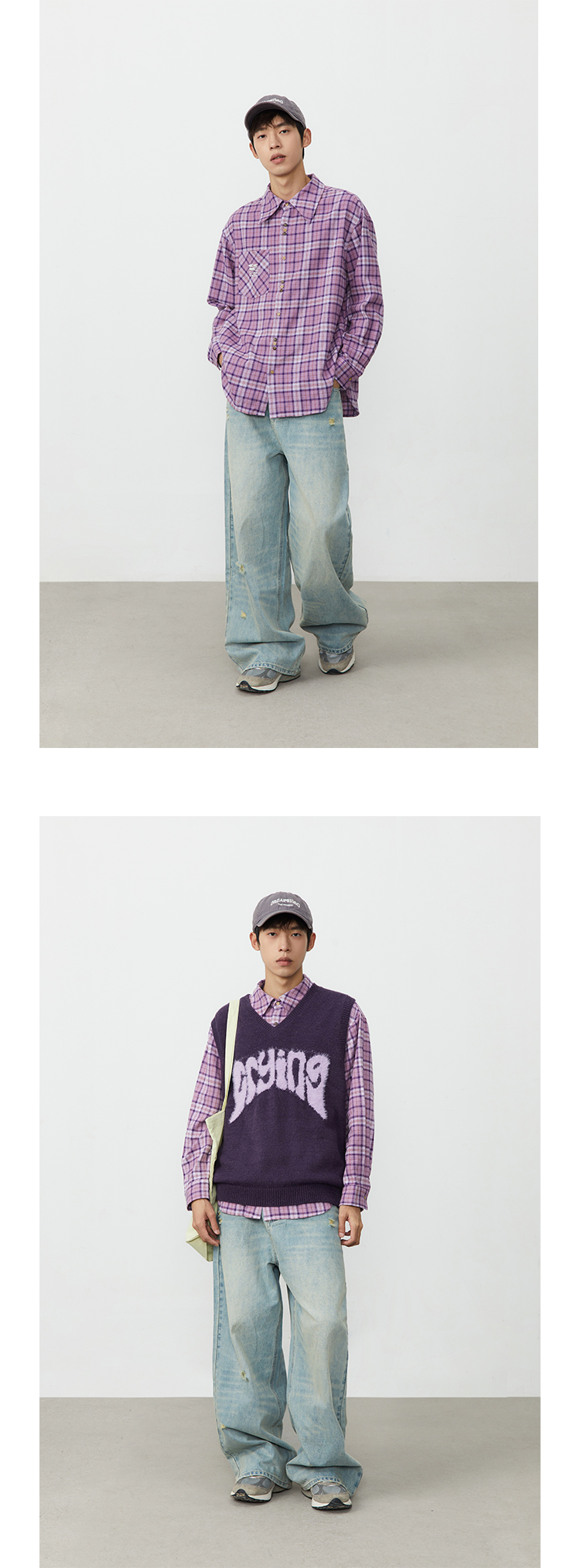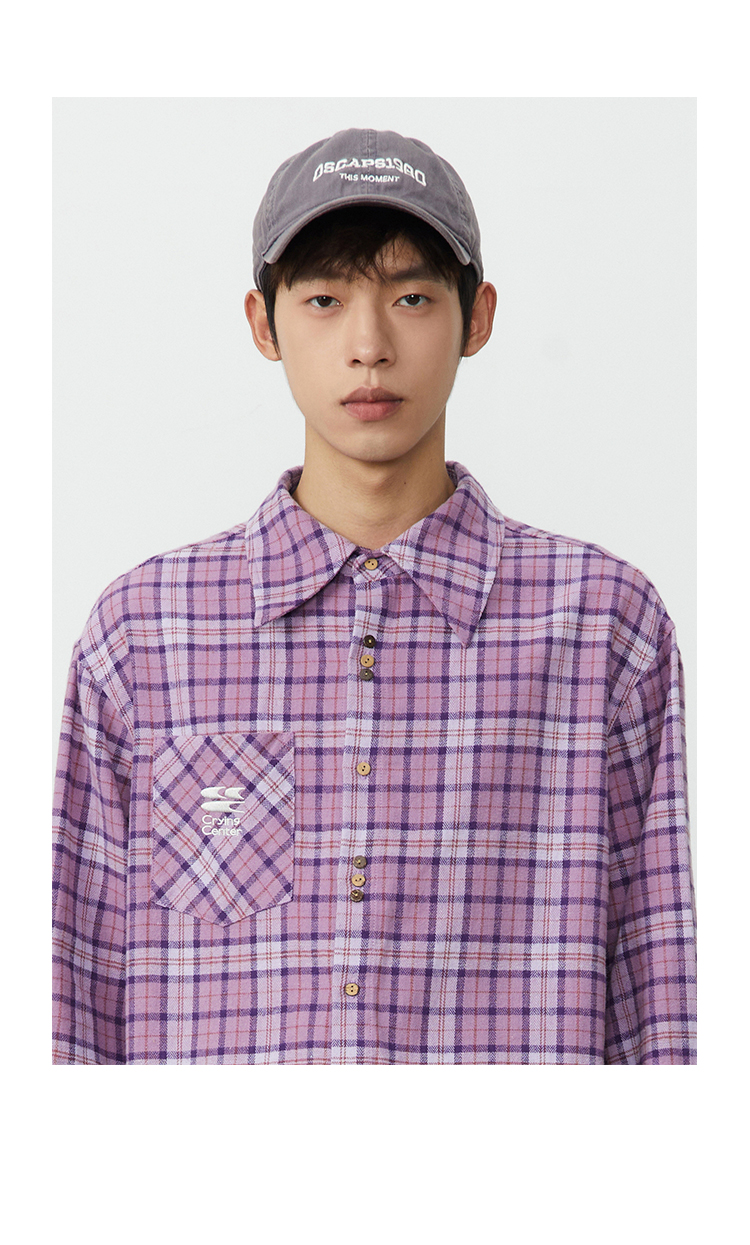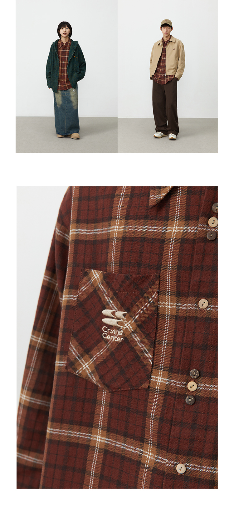 CryingCenter 三色美式格子复古休闲宽松男友衬衫 哭喊中心