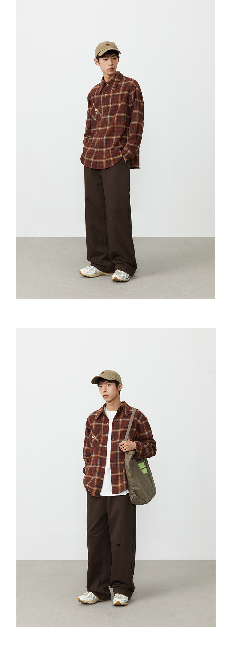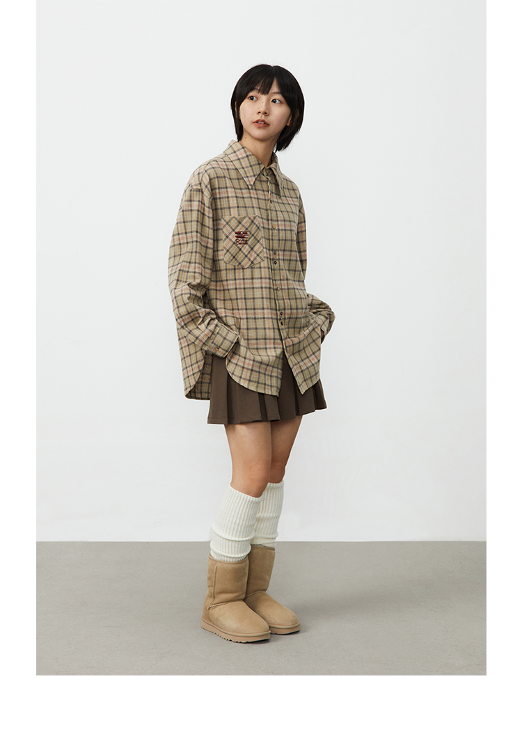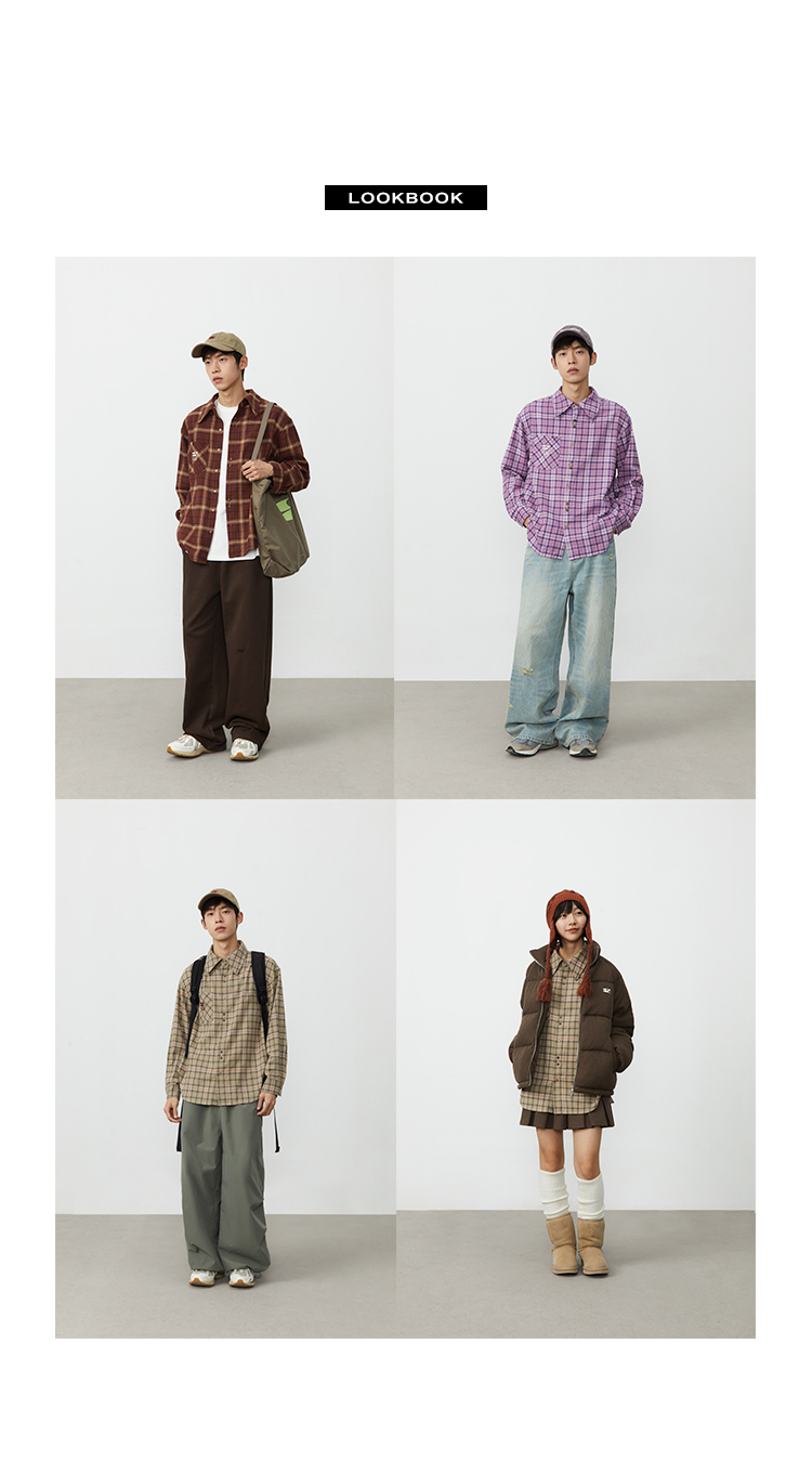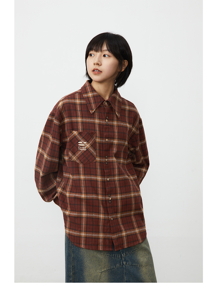 CryingCenter 三色美式格子复古休闲宽松男友衬衫 哭喊中心