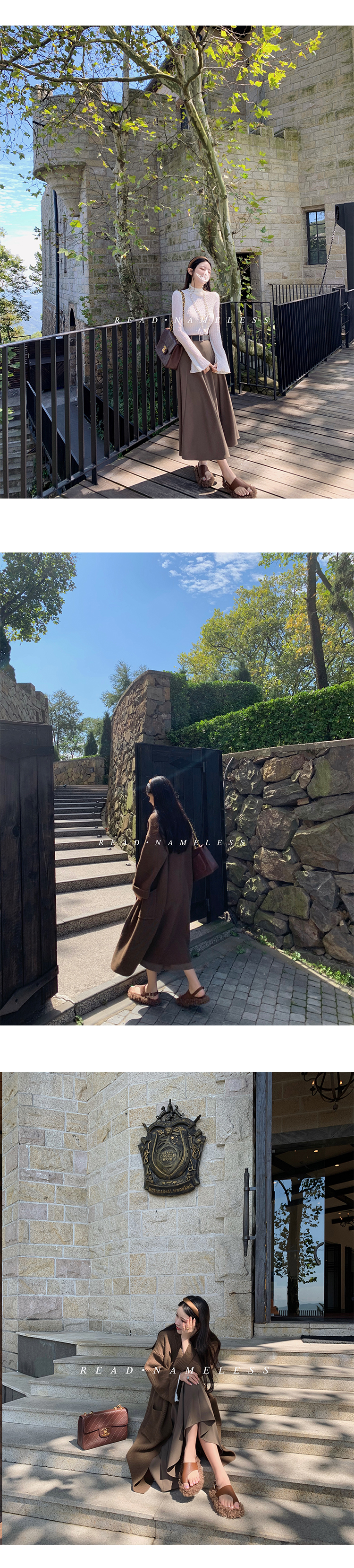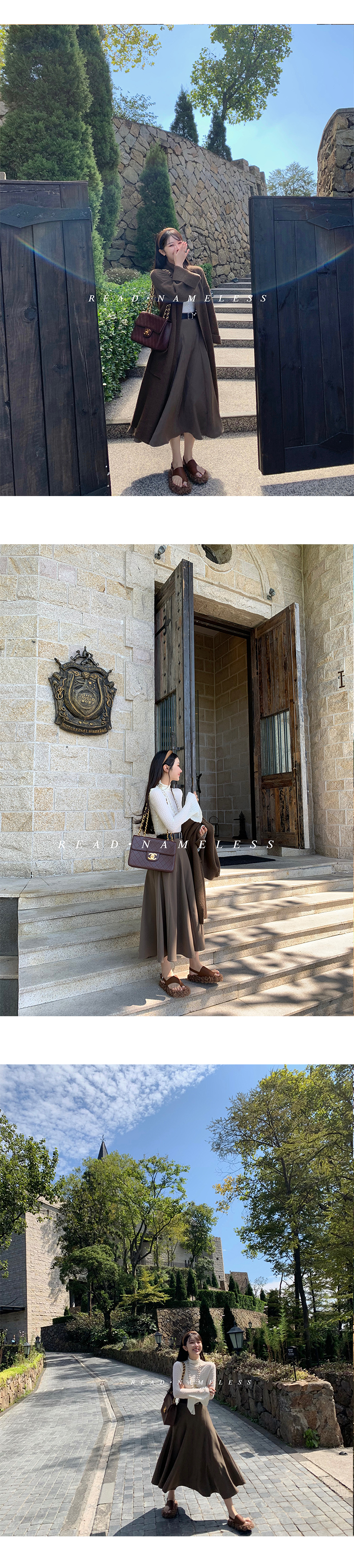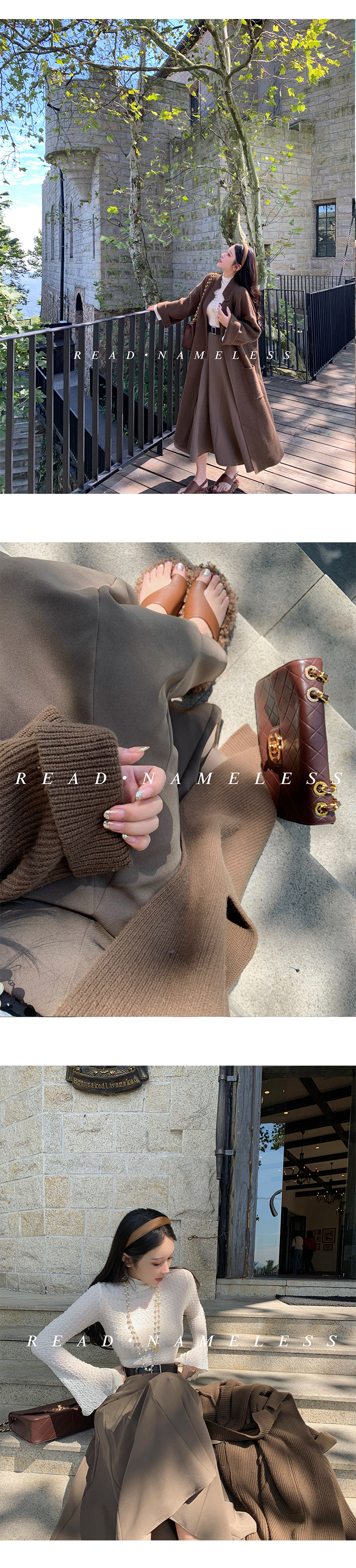 Read Nameless /100%羊毛咖色外套+咖色伞裙+插花高领打底衫