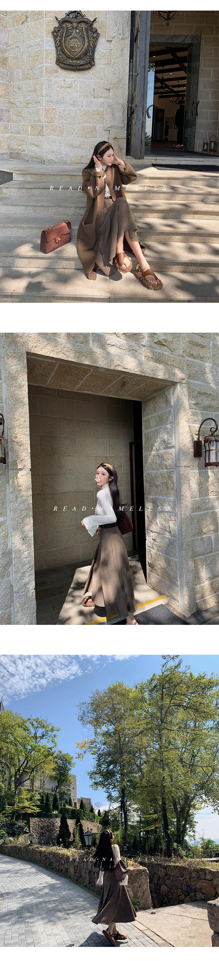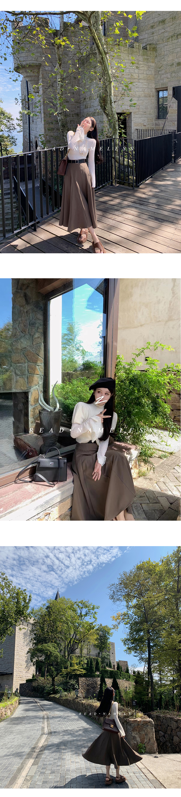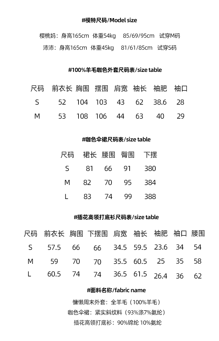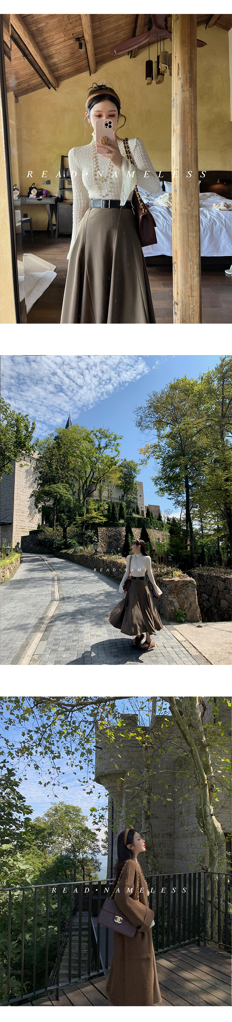 Read Nameless /100%羊毛咖色外套+咖色伞裙+插花高领打底衫