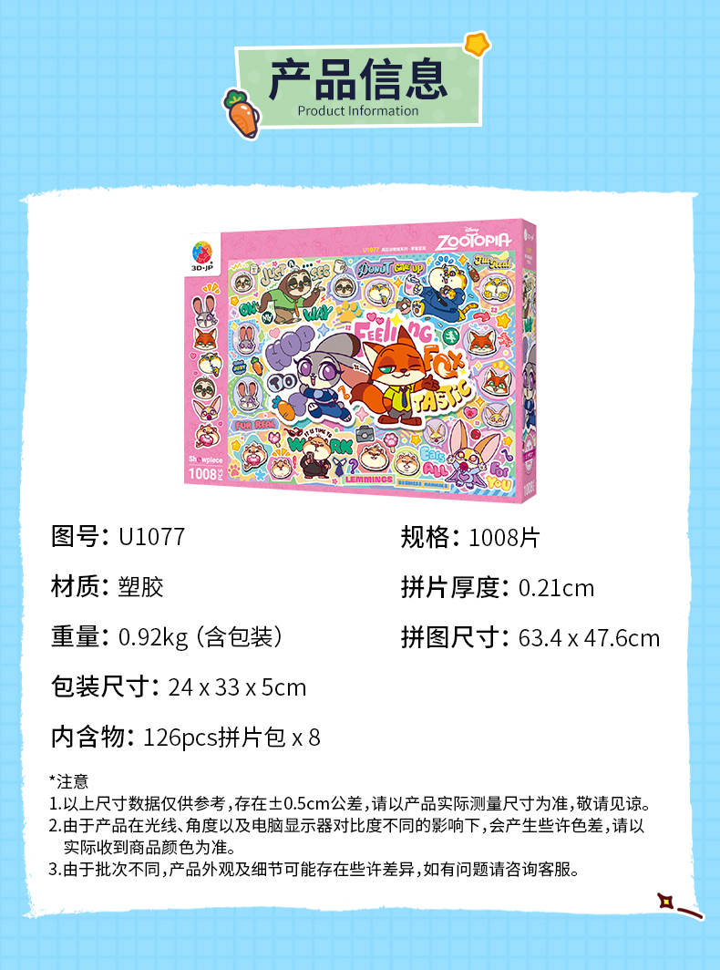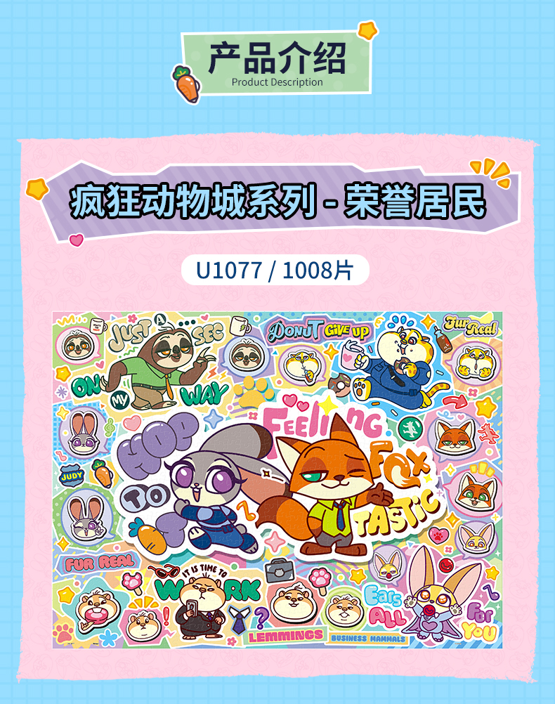 1008片 平面塑料拼图 U1077 疯狂动物城系列-荣誉居民【Showpiece L】