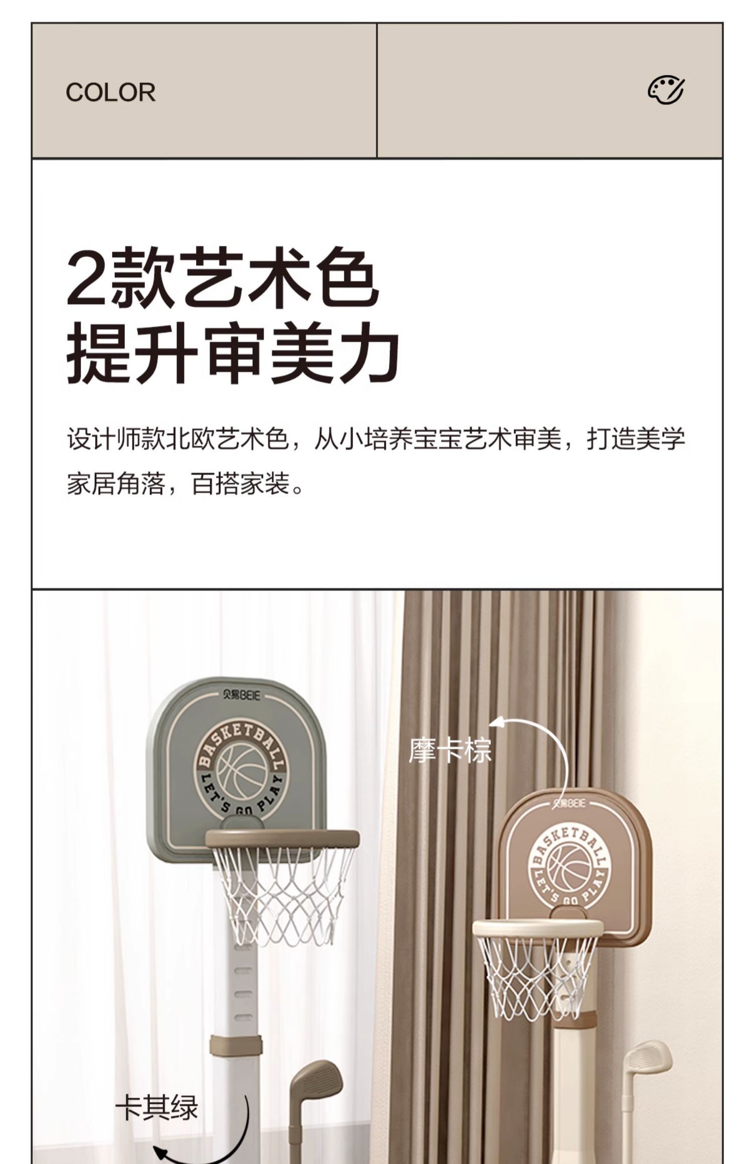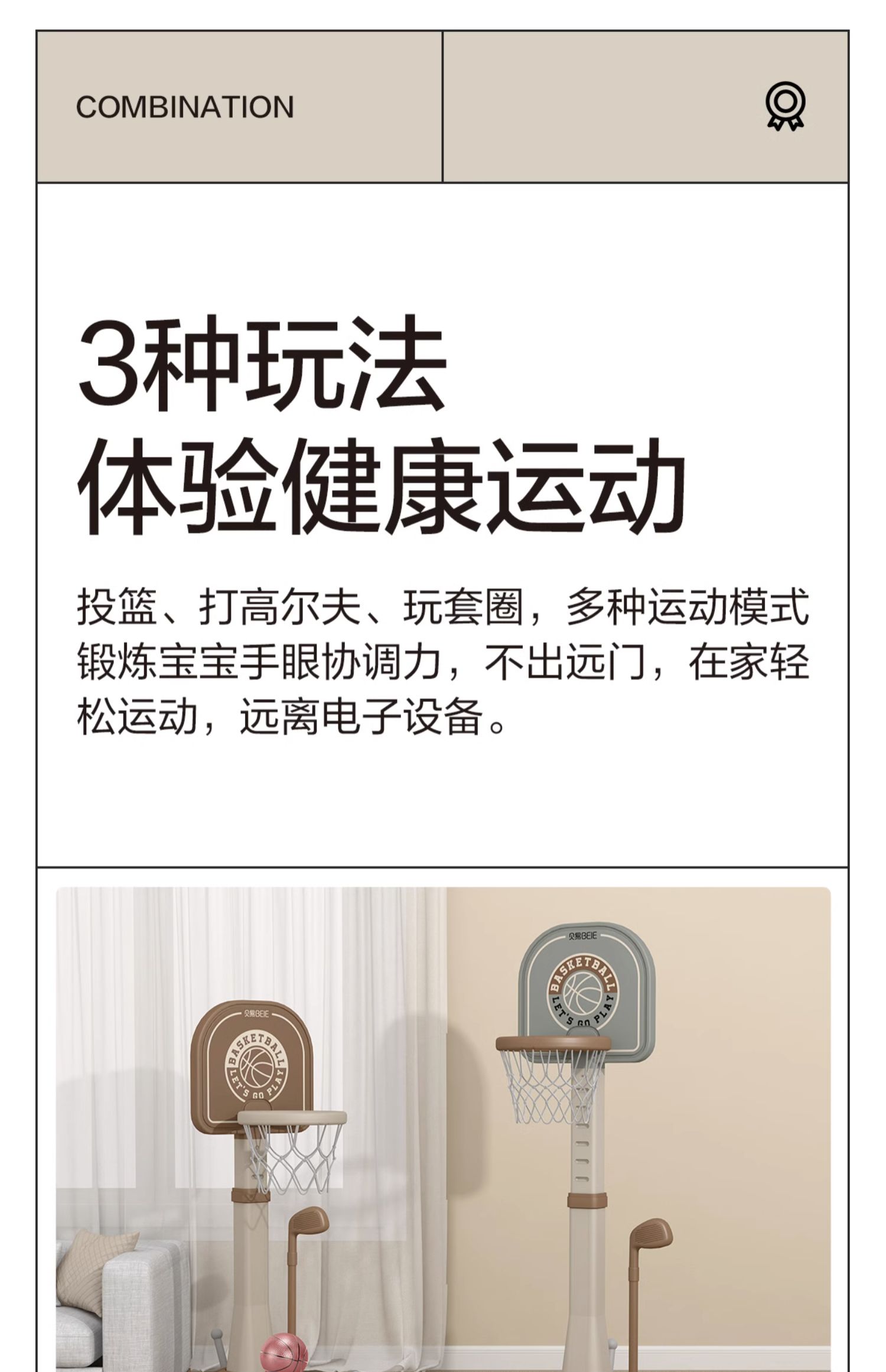 贝易篮球架儿童室内家用小宝宝婴幼儿园静音投篮球框球类玩具男孩【会员下单送:惯性小汽车,还可领券下单】