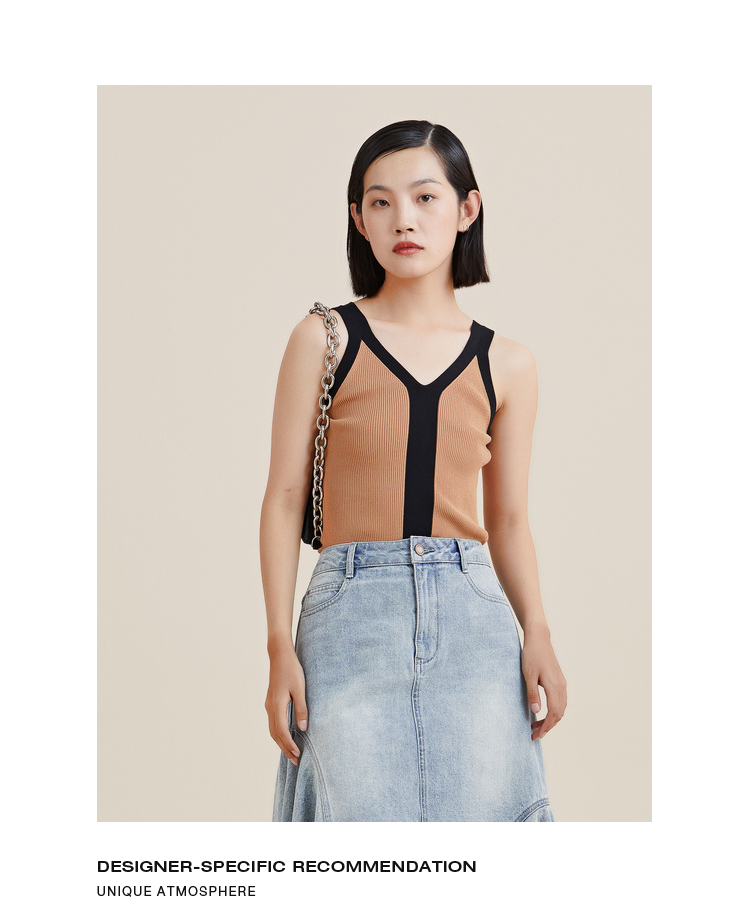 MIIDII/谜底21夏新品修身V领背心针织衫女单穿内搭打底212MZ1228