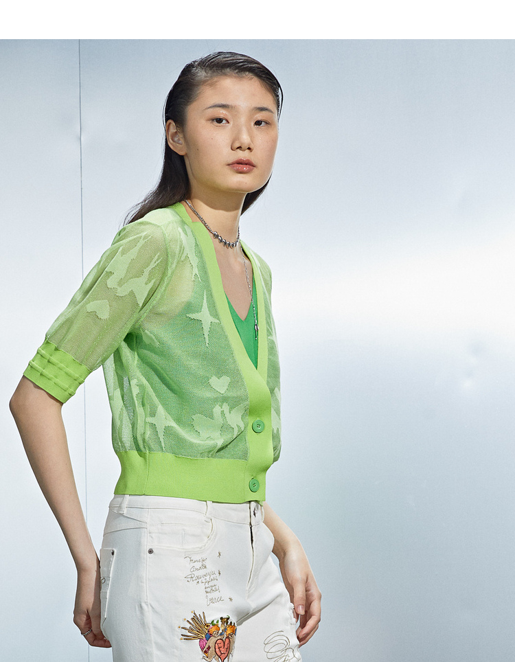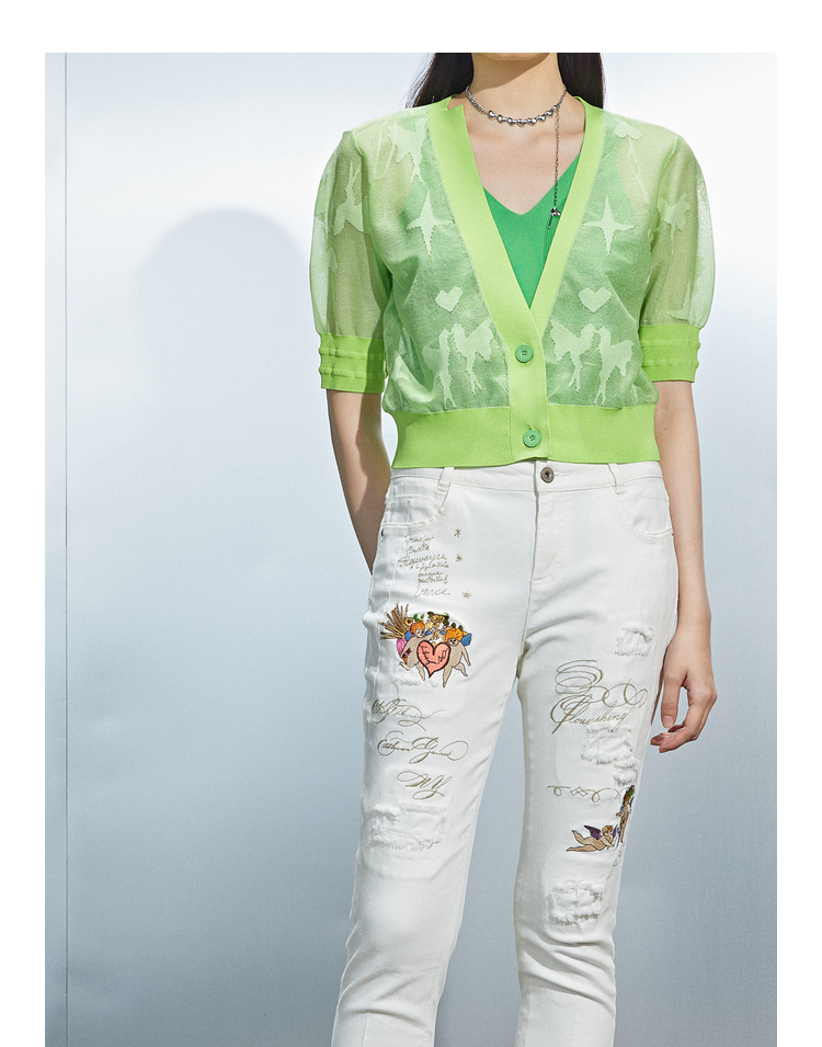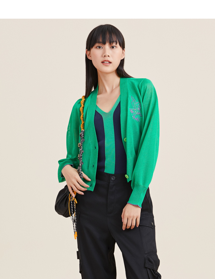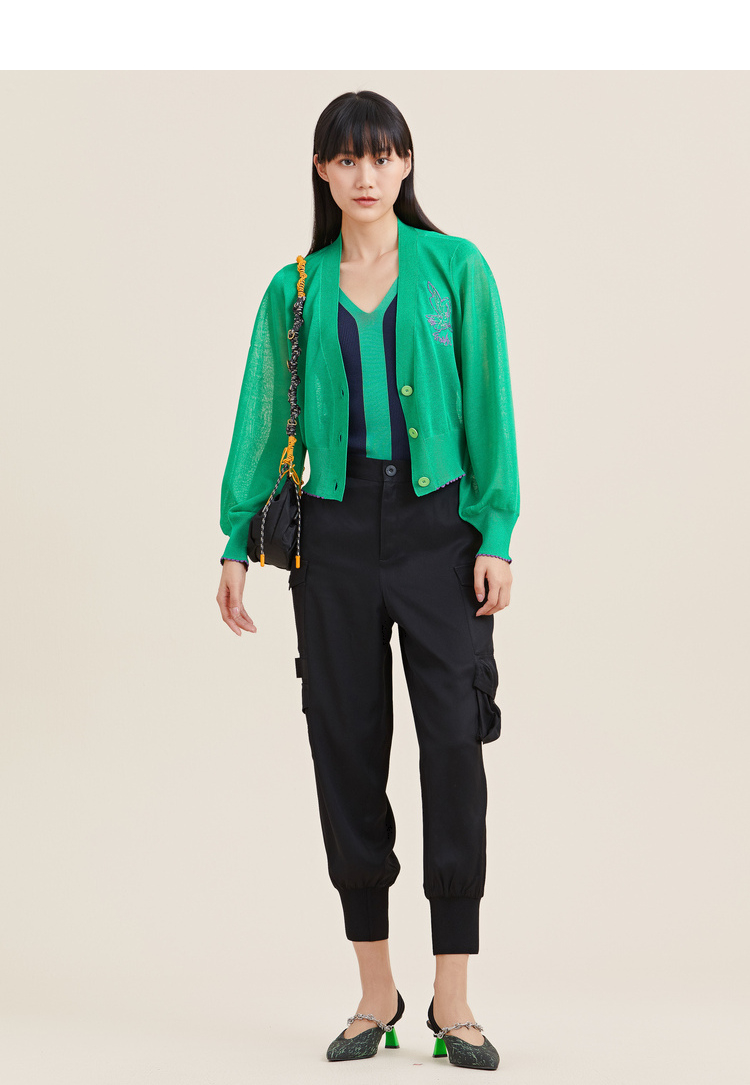 谜底V领套头针织衫长袖2025冬季新品复古原创图案毛衣女254MZ1873