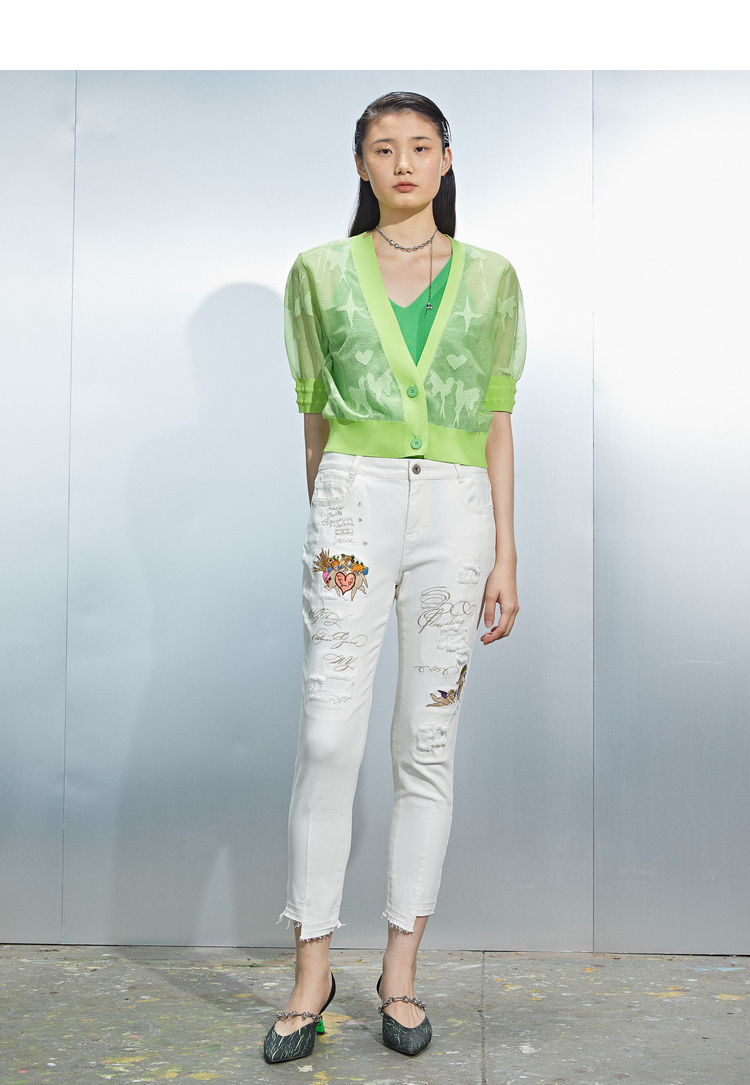 谜底牛仔裤九分裤2025冬季新品复古纹理原创印花加厚女254MJ1504