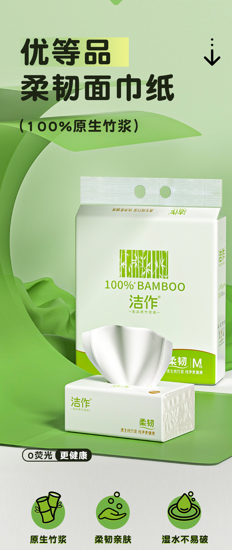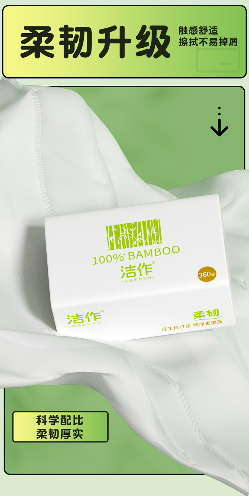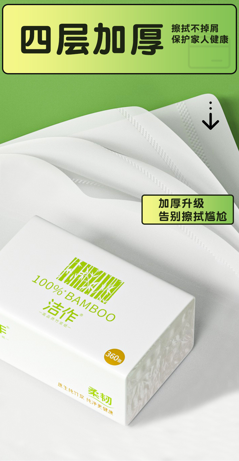 洁作原生竹浆抽纸10包4层加厚清洁去污面巾纸舒适柔韧 100%竹纤维