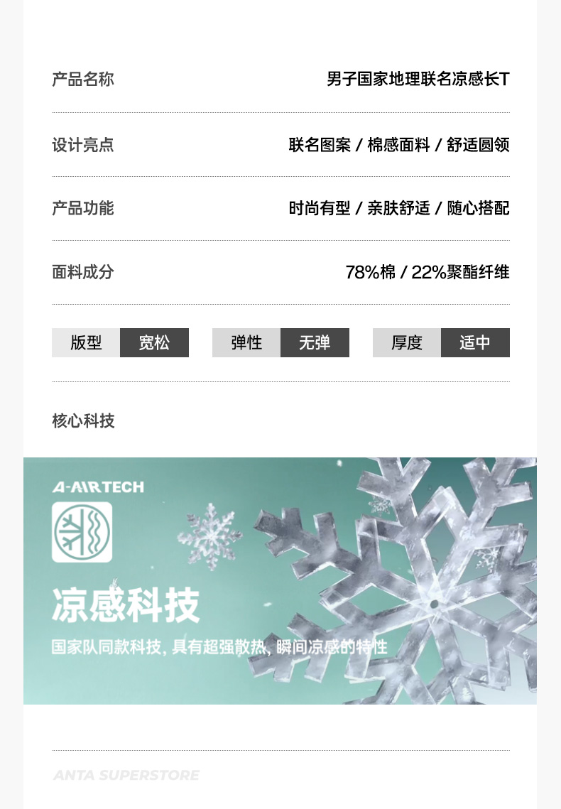 超级安踏 x 中国国家地理联名 | 男子凉感长T印花卫衣152538413U