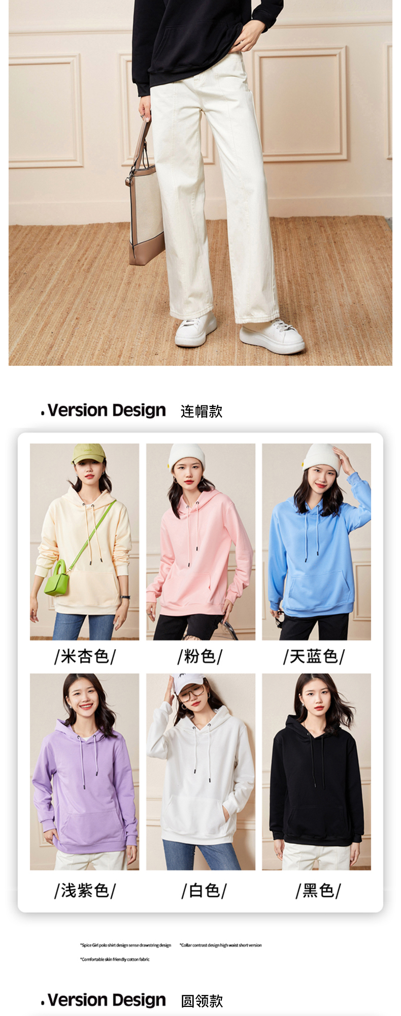 优选丨【圆领+连帽可选】【时髦百搭必备】春季卫衣女宽松套头圆领连帽套头衫上衣可情侣纯棉卫衣