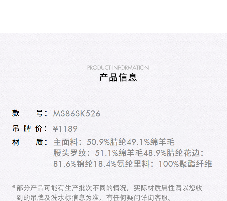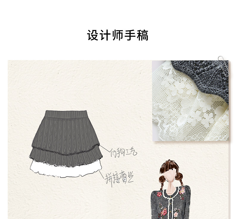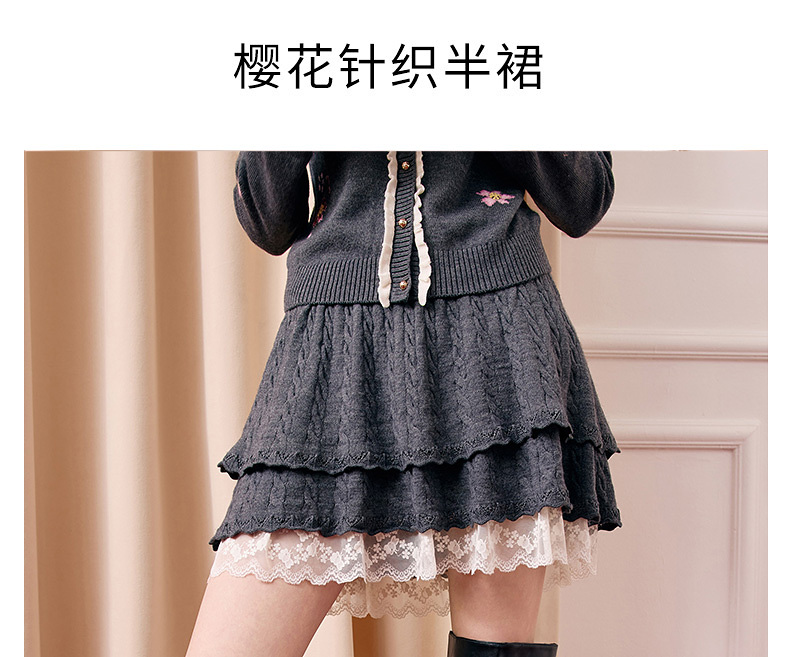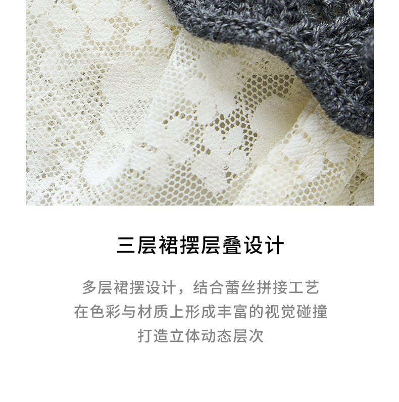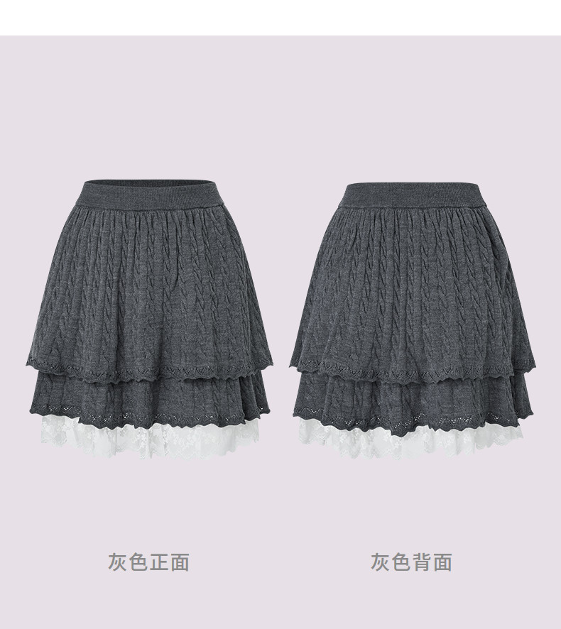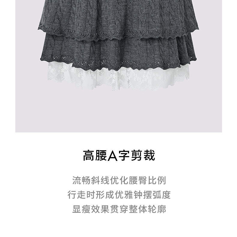 天虹发货:MAXRIENY格雷系穿搭散摆蕾丝拼接短裙羊毛混纺半裙25冬款(货号:MS86SK526)