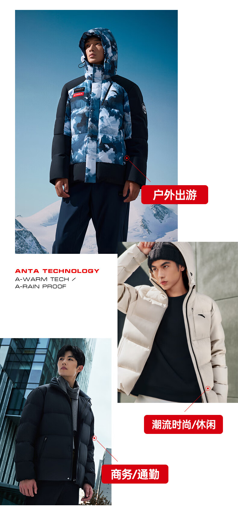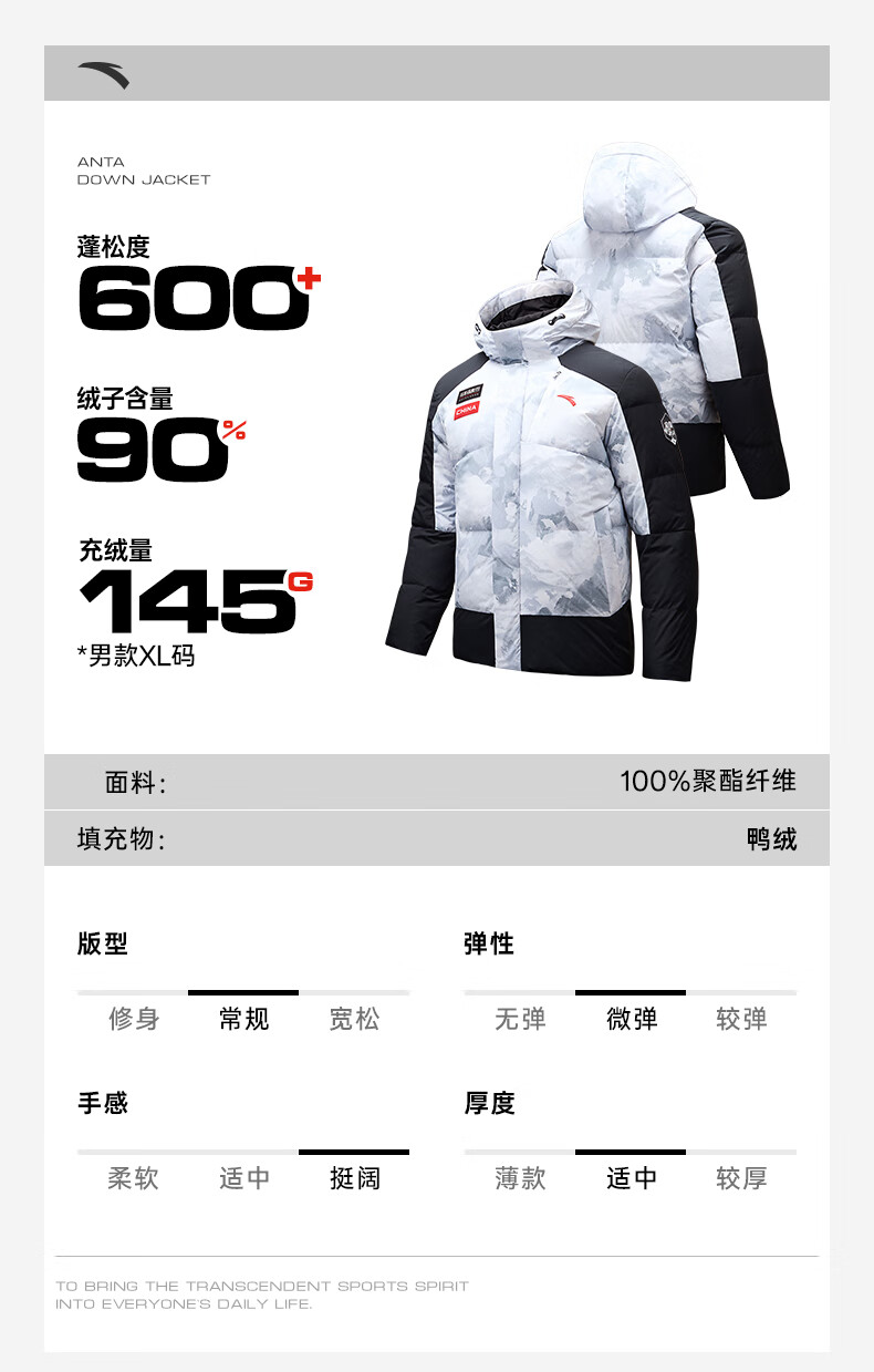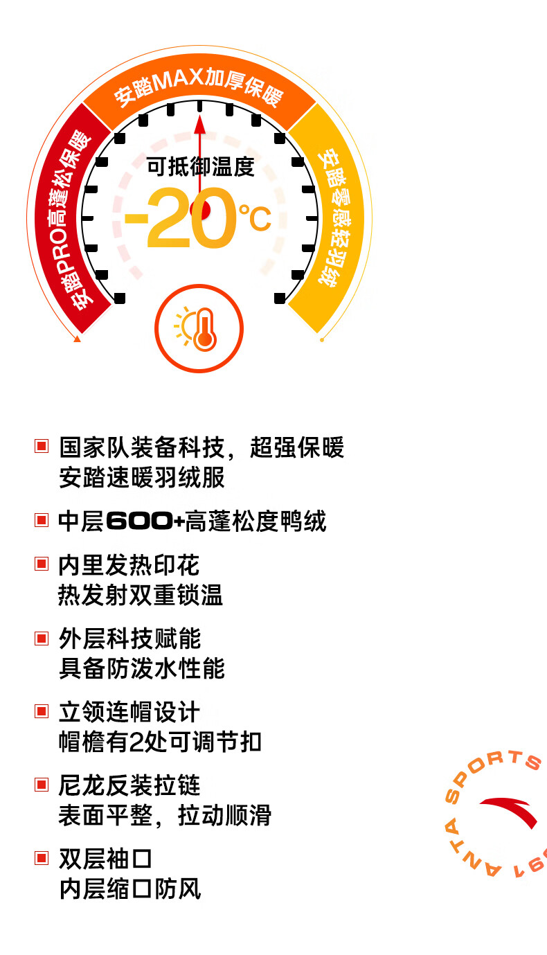 安踏冰甲羽绒丨防泼水90羽绒服男冬季防风保暖棉服外套152447926N