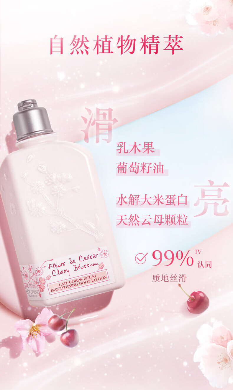 欧舒丹甜蜜樱花/马鞍草/薰衣草/云中桂 香氛亮采润肤露250ml滋润保湿温和补水送女友护肤礼物 心选到家