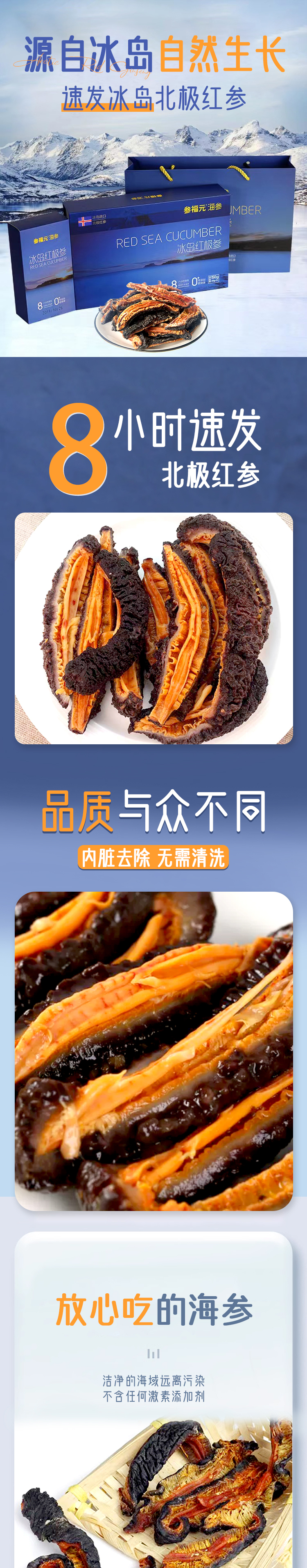 一价到底 【冰岛野生 北极红参 干参礼盒】纯净海域远离污染,高倍泡发,8小时速发!