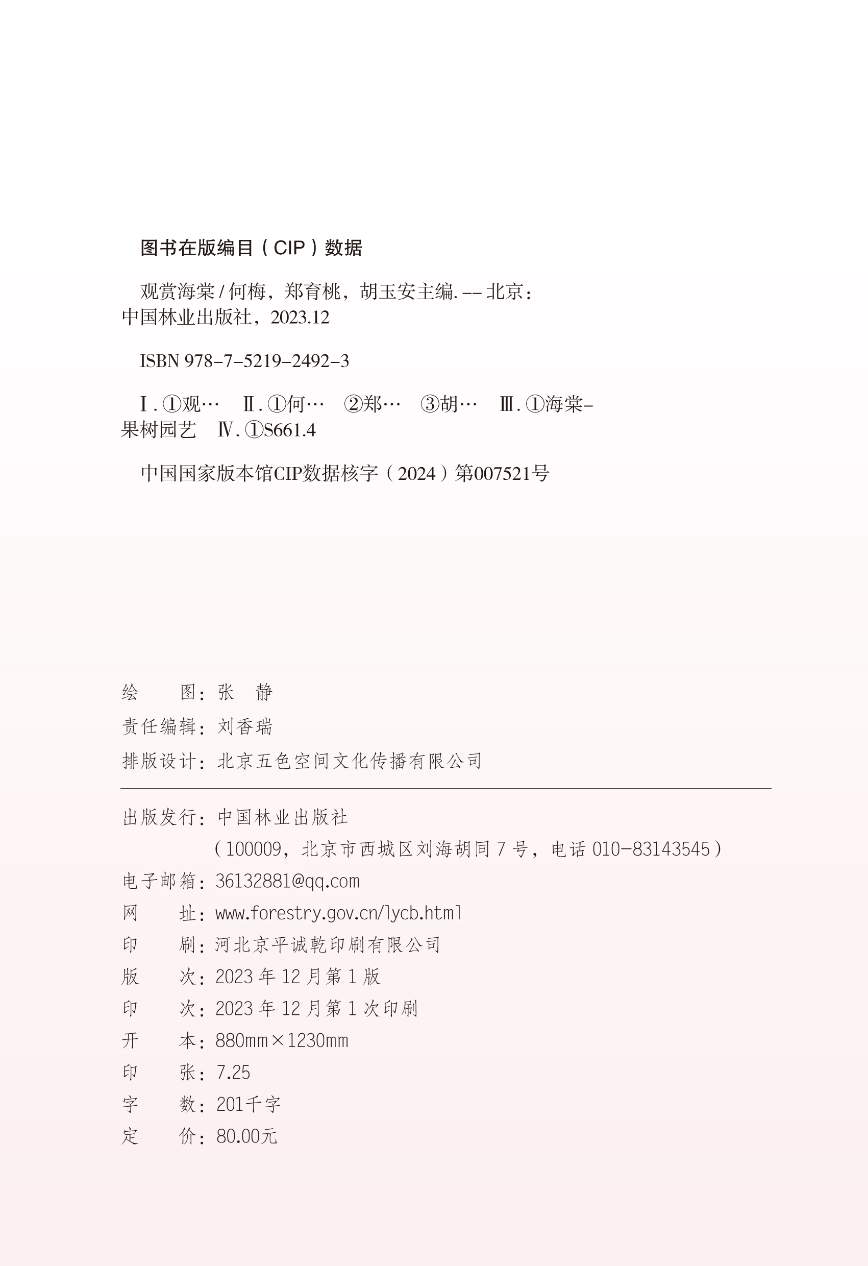 本书对80种常见优良观赏海棠进行品种分类并详细描述其特征,为读者展现了观赏海棠概况、品种分类和园林应用,可为观赏海棠科研工作者、花卉生产者及个人爱好者提供借鉴和参考,也可供园林设计师、绿地规划设计人员等参考。
