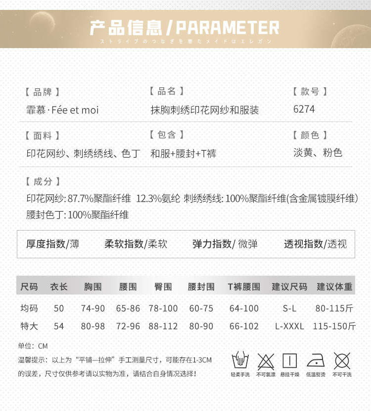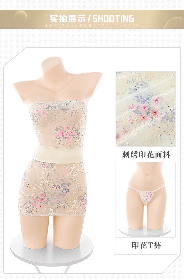 【情趣内衣】霏慕抹胸刺绣印花网纱和服装6274