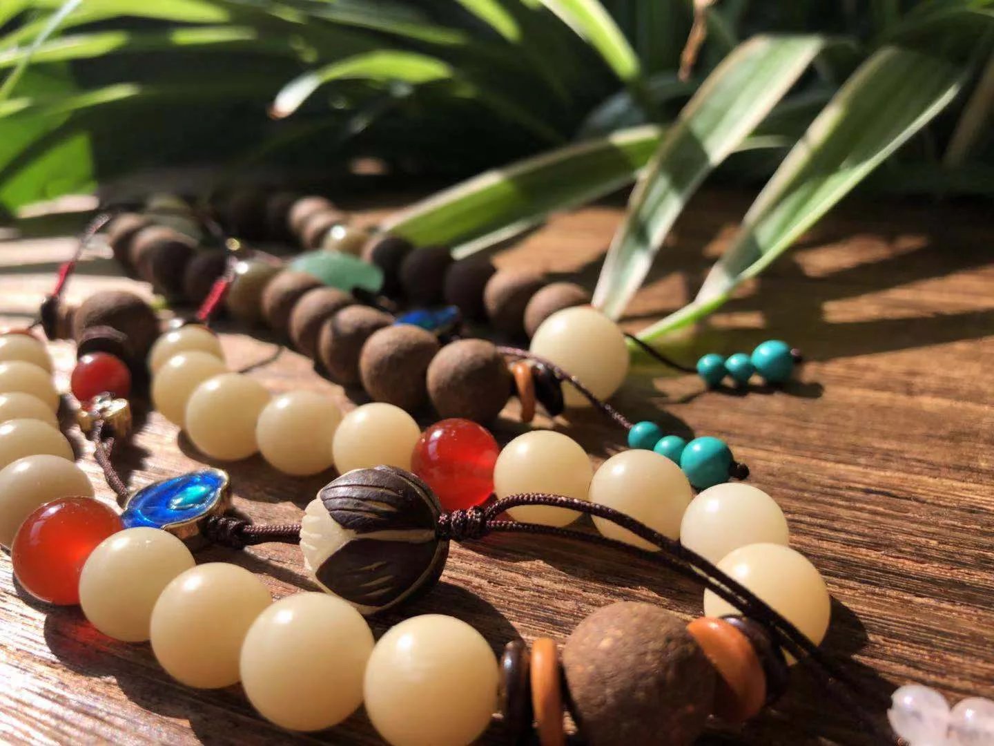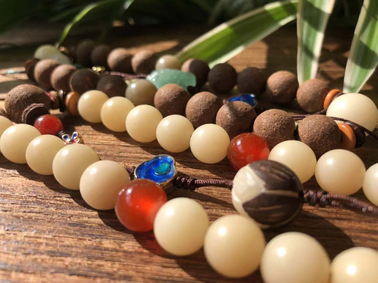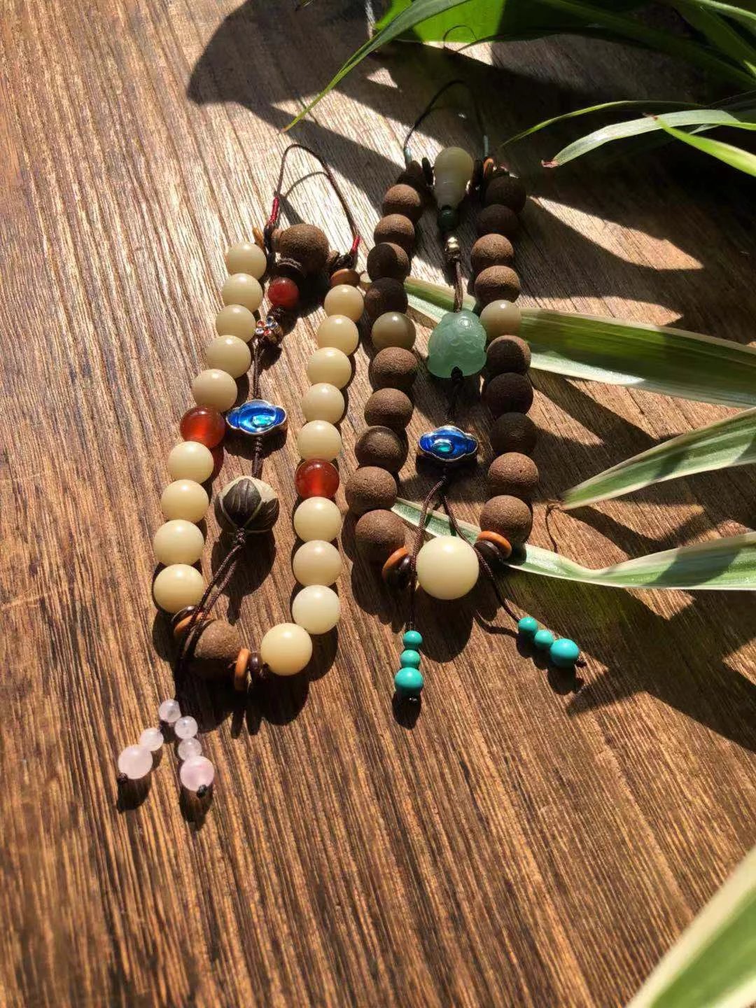 阳春款配珠有菩提根、东陵玉、景泰蓝等。