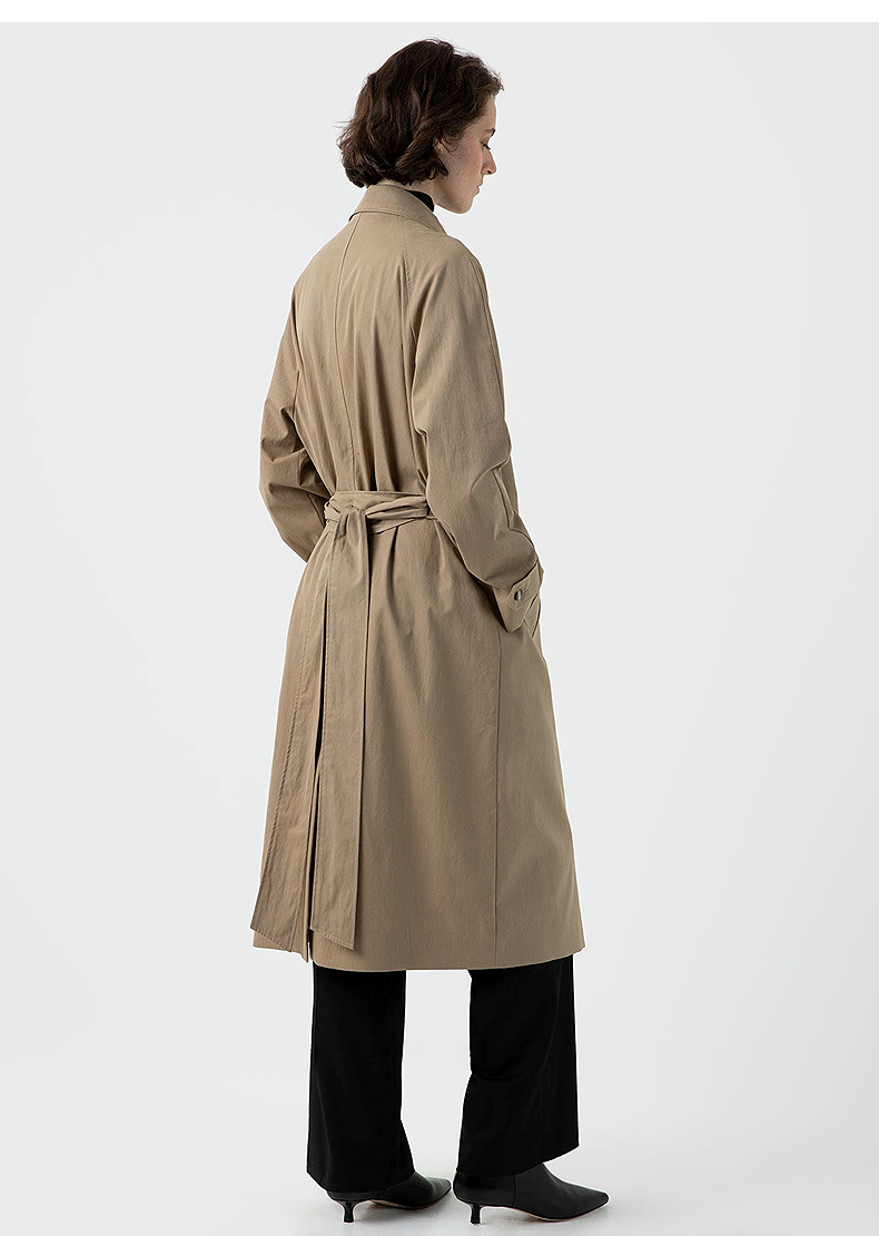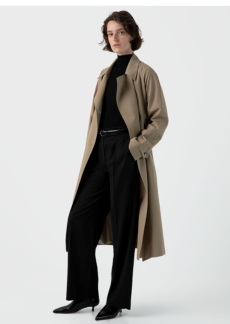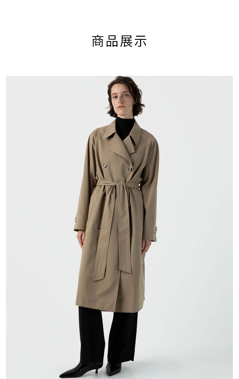 SUNSPEL女士秋冬全棉双排扣系带英伦风衣长款