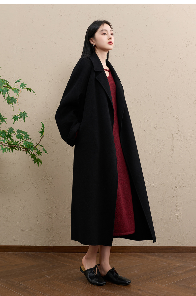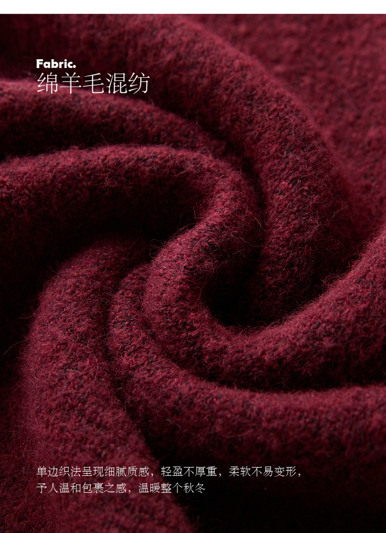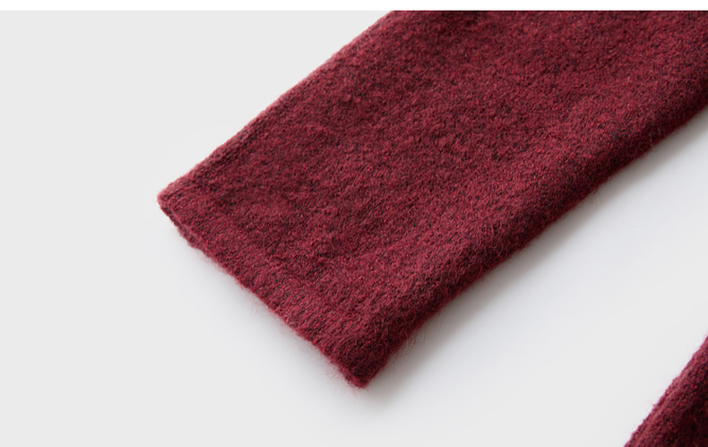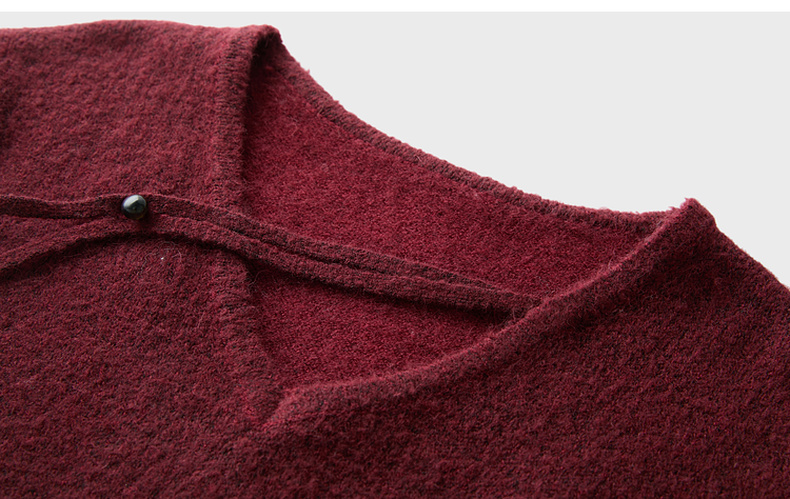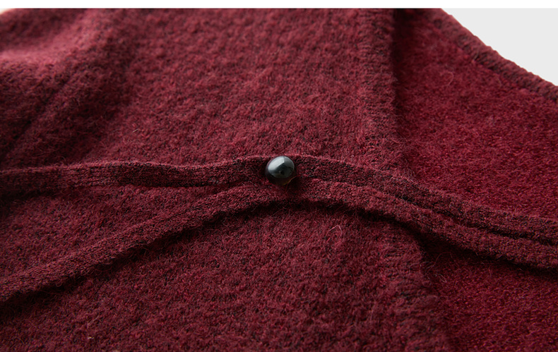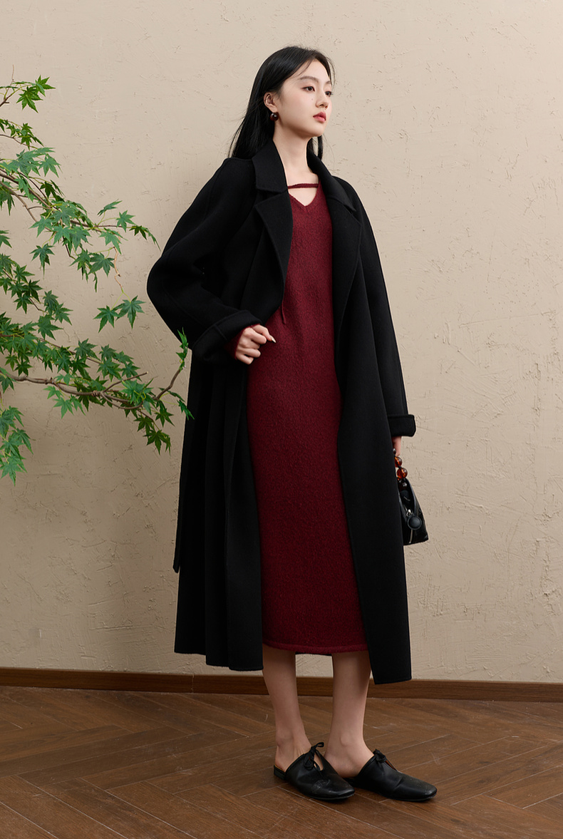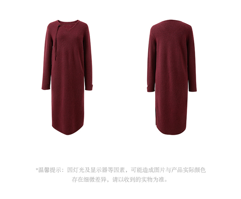 三彩【明日落红】2025冬季新款针织裙V领宽松开叉长裙C