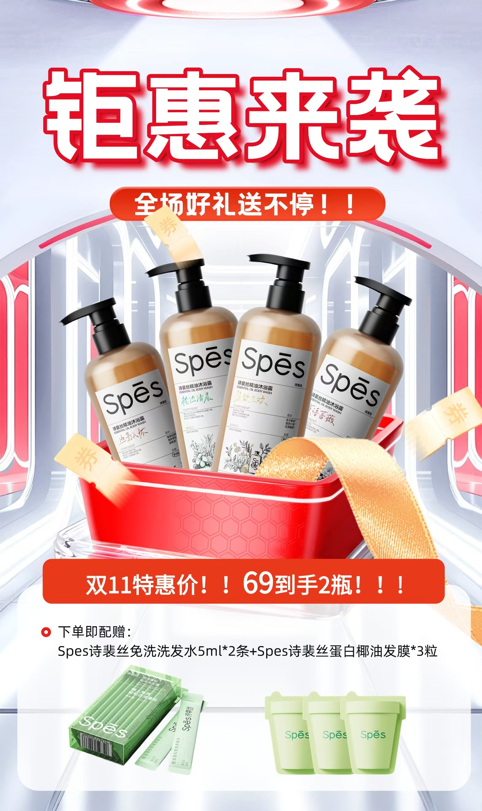 他家真的爆款太多了,我用过“Spēs海盐洗头膏”、“Spēs丰盈蓬松洗发水”、“Spēs干发喷雾”都很好用。