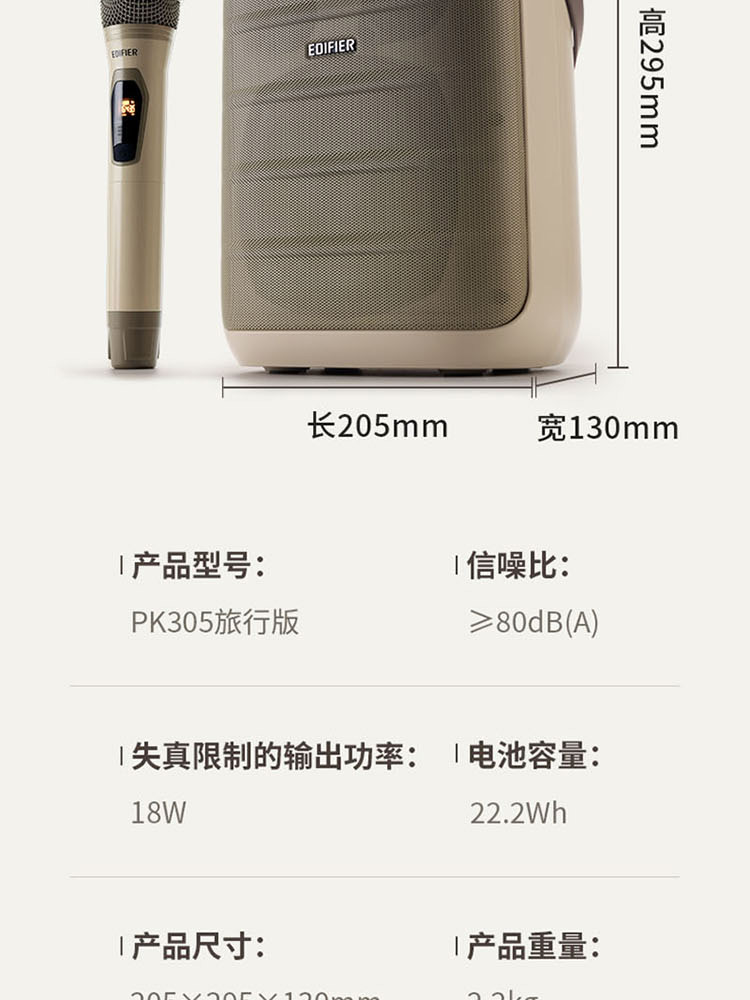 漫步者(EDIFIER) PK305 旅行版便携式户外移动音箱配话筒